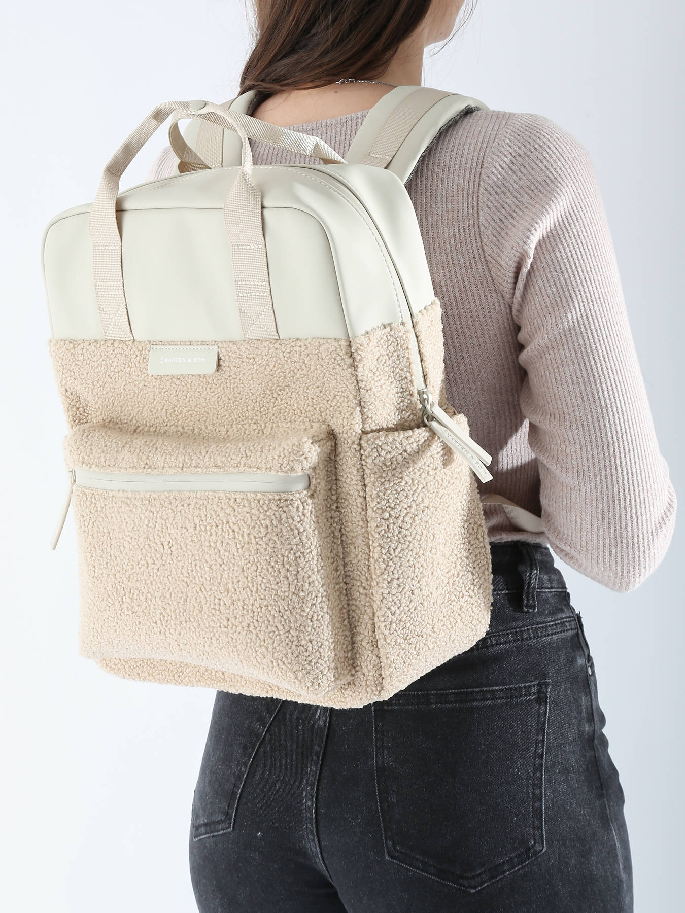 The KAPTEN AND SON backpack, made from recycled polyester, is a modern and eco-friendly model. Ideal for those aged 11 and up, it combines style and functionality. On the outside, it features one front pocket, two side pockets, and one back pocket, all secured with zippers for easy and safe access to your belongings. The adjustable straps provide optimal comfort whether you carry it by hand or on your back. Inside, you'll find a spacious compartment to organize your essentials, with three simple pockets, one zippered pocket, and space for a 15"" laptop for added convenience. This backpack is perfect for school, outings, or travel, offering both trendy design and everyday practicality.