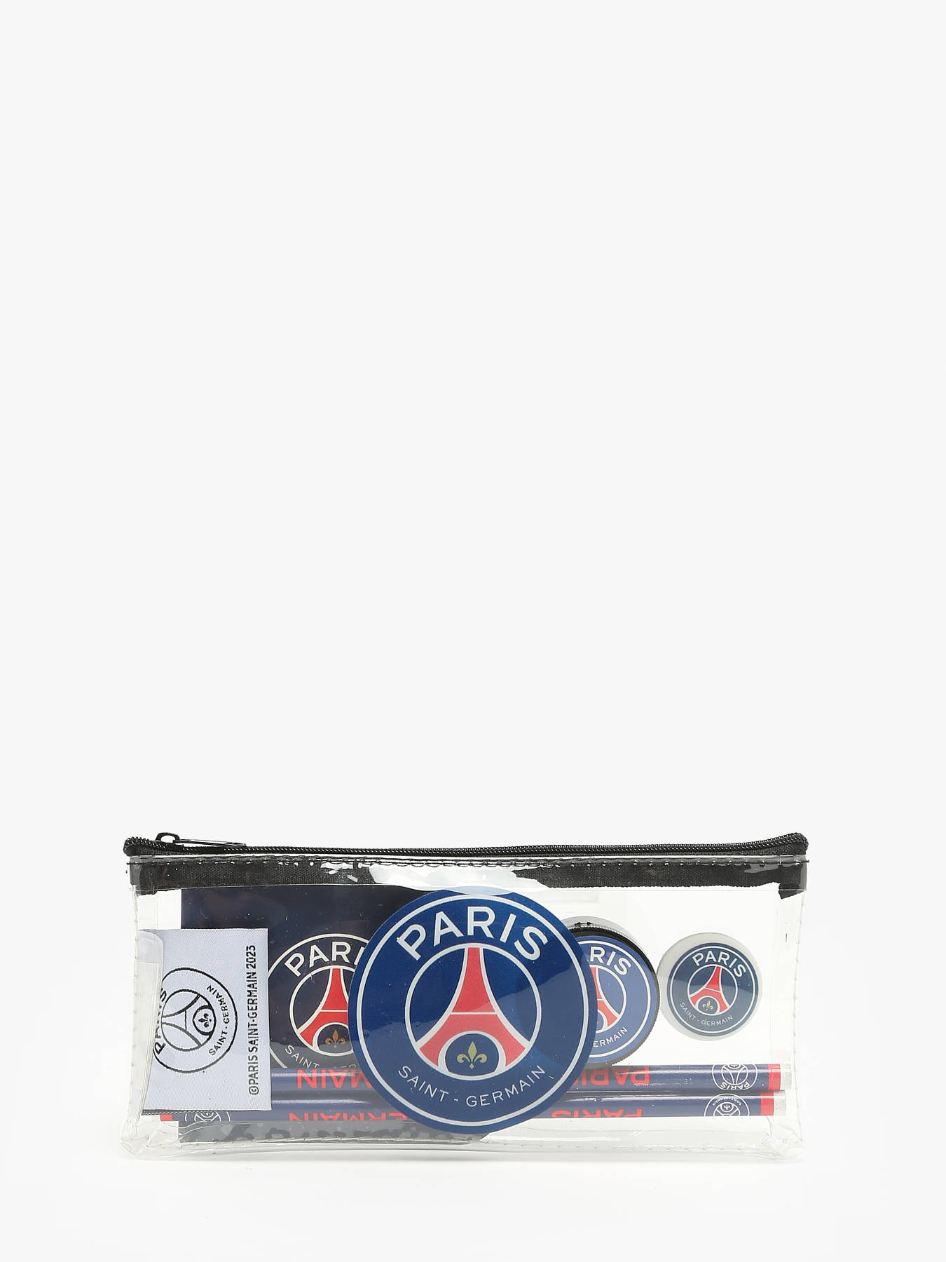 The PARIS ST GERMAIN pencil case is a must-have accessory for football fans and supporters of the famous team. Made from durable polyester, it ensures excellent longevity and resistance to daily use. On the outside, it features a single main zipped pocket, providing easy and secure access to your school supplies. Inside, there is one compartment to neatly store and organize pens, pencils, erasers, and other small items. Compact and practical, this pencil case is perfect for young PSG supporters, allowing them to show their enthusiasm while keeping their belongings well-organized. Its sleek and sporty design makes it an ideal choice for students who want to combine functionality and style in their school day.