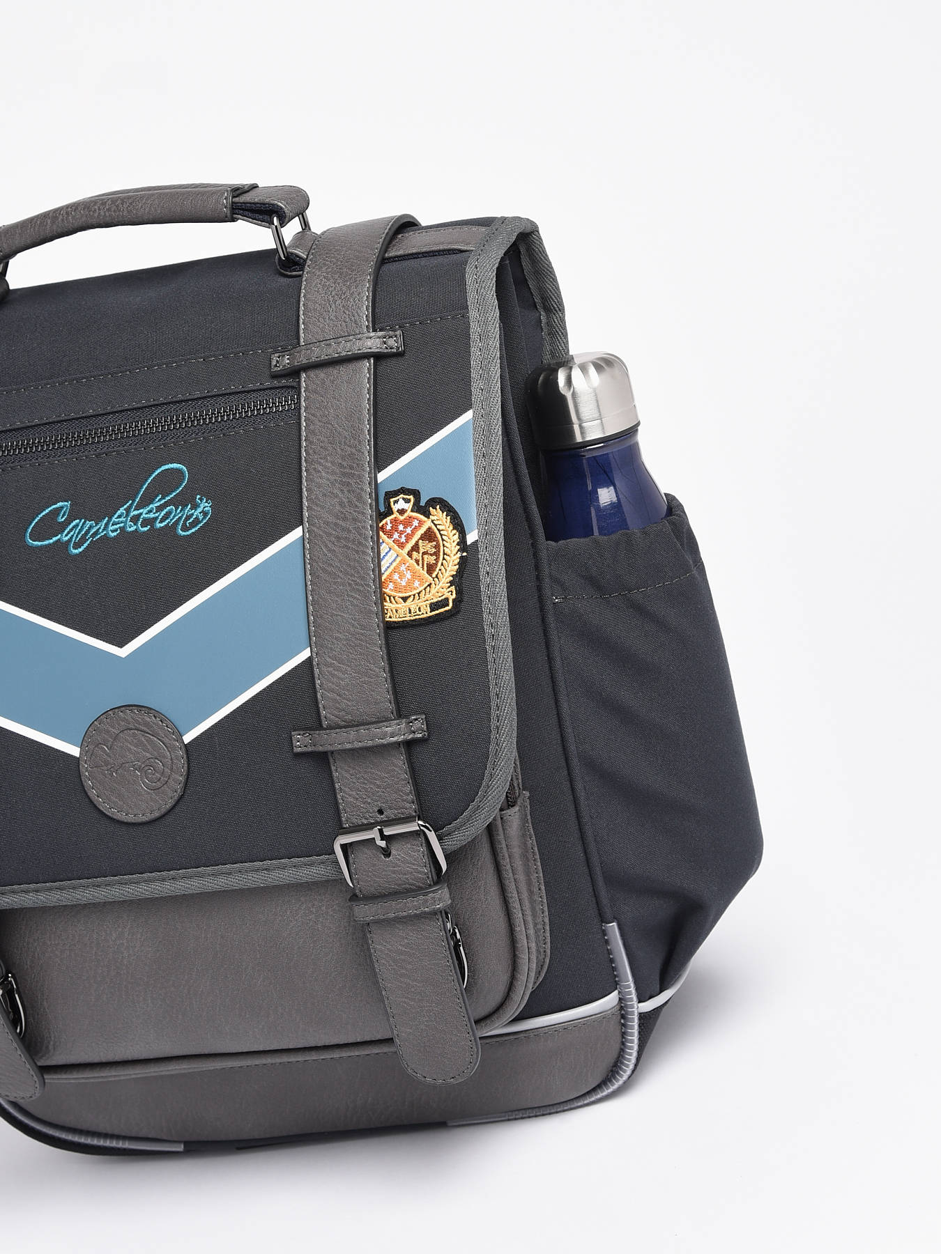 39 cm - 19 liters - 1.12 kg ~ 39 cm Backpack for Primary School from the Vintage Urban line by Caméléon. We love this redesigned backpack, perfect for smaller frames, such as young children. This backpack is ideal for CP and CE1 students. The weight of school supplies will be better distributed, which will relieve the child's back. The two compartments of this backpack are perfect for A4-sized notebooks. A slot for a ruler has been included, as well as an elastic band for the water bottle. For the child's comfort, the back and straps are padded, and the bottom of the bag is reinforced. For safety, this backpack features reflective strips. Made from recycled polyester.