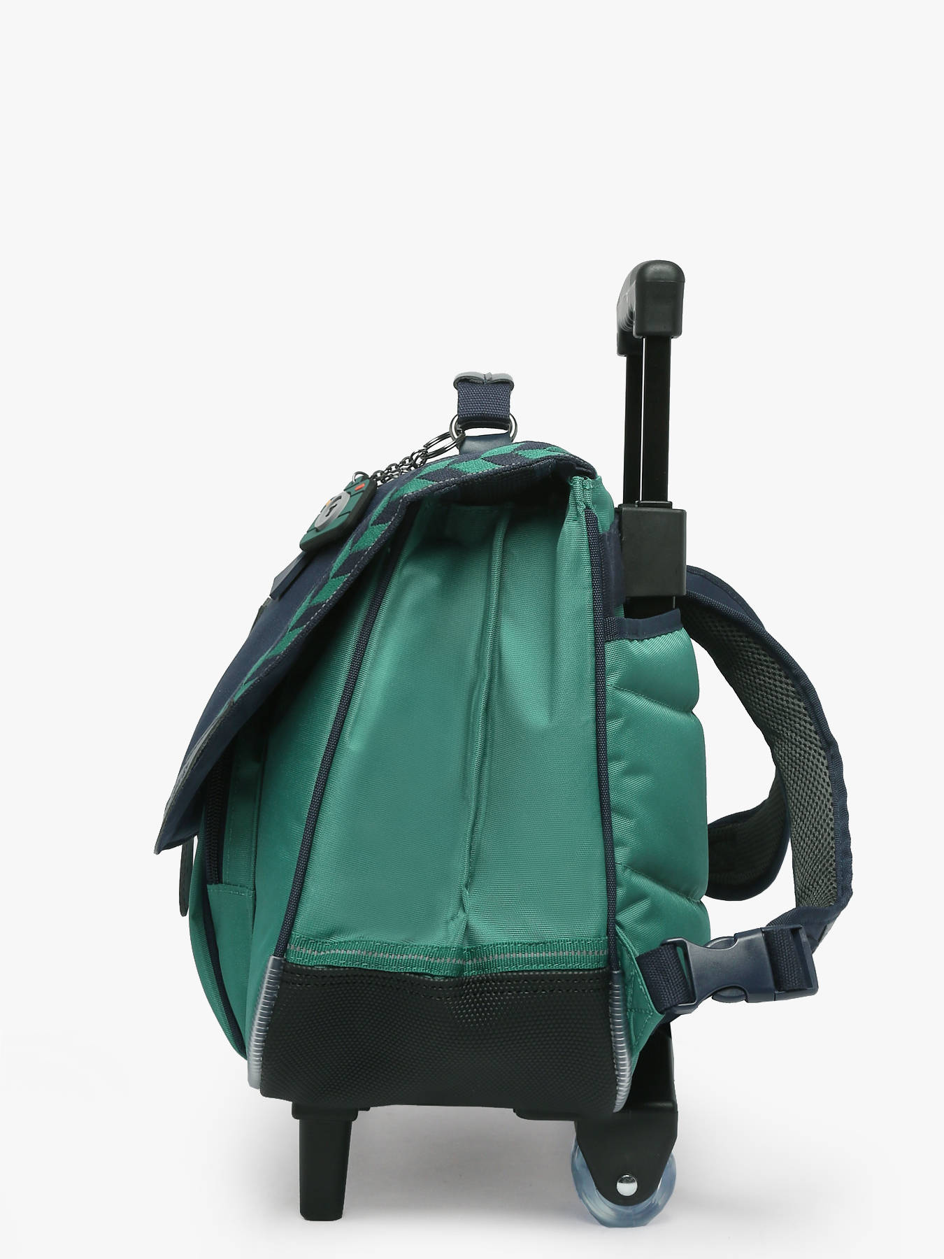 38 cm - 14 liters - 2.1 kg ~ Ideal for the first three years of primary school, this 2-compartment wheeled schoolbag from the brand TANN’S is made of recycled polyester, combining durability and environmental friendliness. It offers two spacious compartments to store A4 folders, notebooks up to 24x32 cm, and A4 binders, as well as an interior zipped pocket to secure small items. A convenient front pocket allows quick access to essential supplies. The flap closure with clasp guarantees protection of the contents. This schoolbag is equipped with sturdy wheels for easy transport and adjustable shoulder straps for comfortable carrying on the back. Lightweight and functional, it provides optimal organization while embracing an eco-friendly approach.