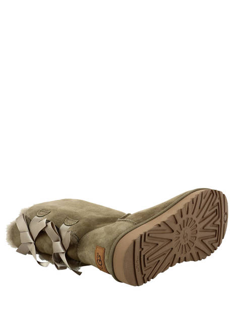 Optez pour cette paire de bottes UGG en suède et peau de mouton double face. Un indispensable à avoir dans son shoesing cet hiver ! Pour plus de glamour, des nœuds ont été ajoutés à l'arrière de la botte. Polyvalentes, vous pouvez aussi bien porter ces bottes avec la tige relevée que repliée. Nous vous conseillons de prendre votre taille habituelle. Dotées d'un traitement contre la pluie, ces bottes résistent désormais aux tâches et à l’eau. Elle possède également une semelle légère qui assure confort, adhérence et durabilité. Elles sont idéales à porter avec un jean pour un look décontracté mais aussi avec une robe ou une jupe !