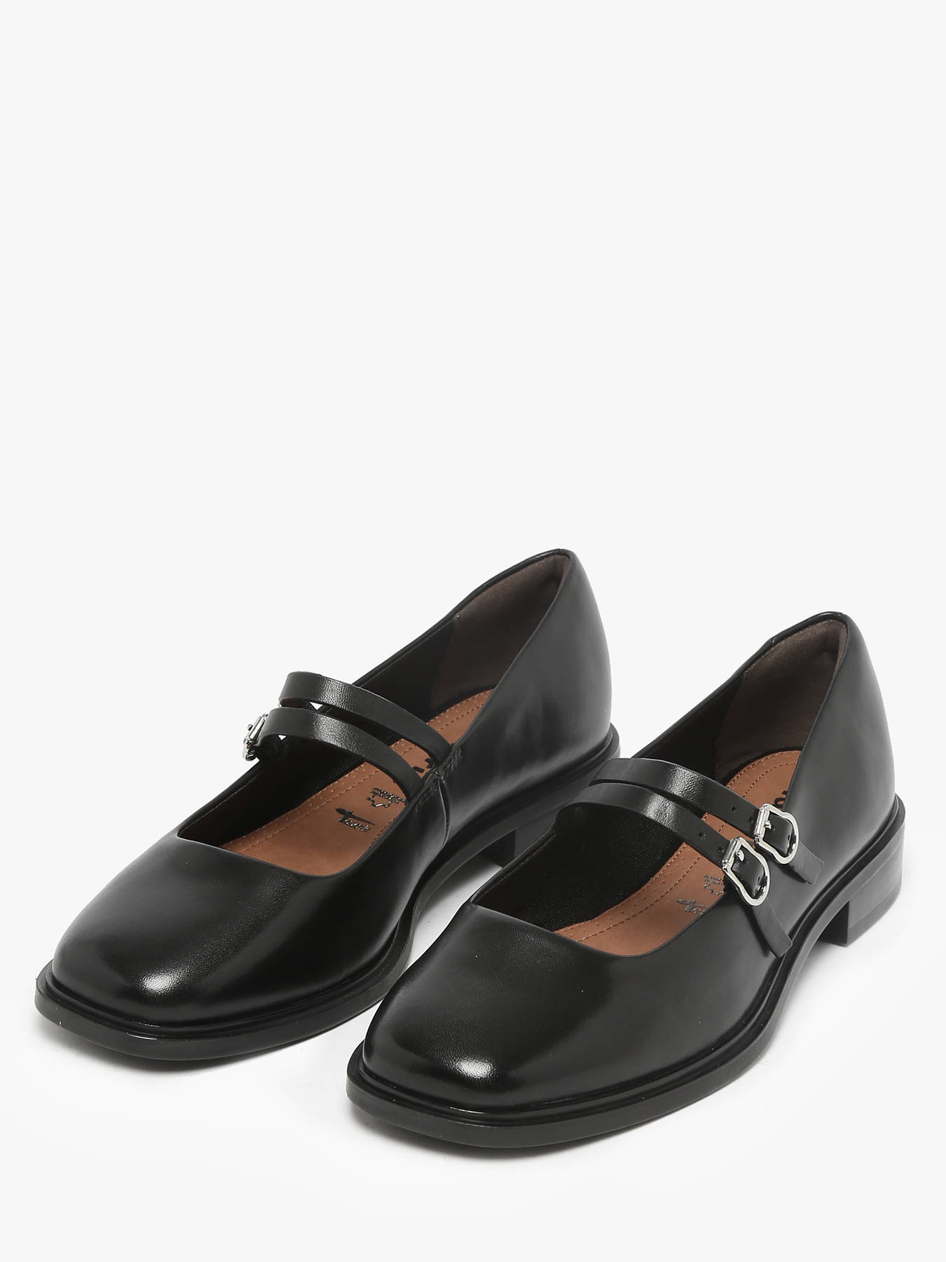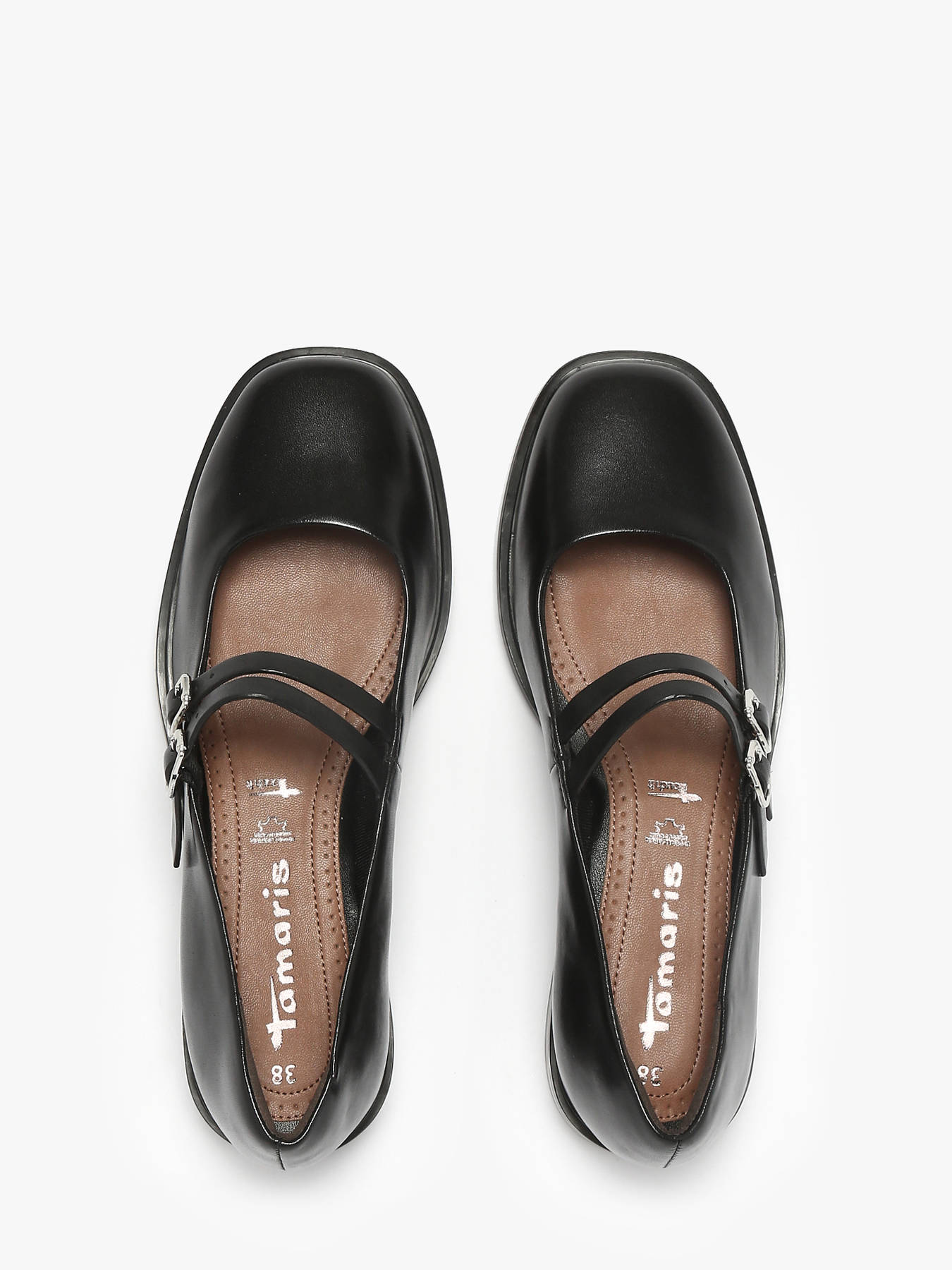 Express your style with these Tamaris leather ballerinas, available in black, featuring a double strap, perfect to brighten your office days or elevate festive moments. The 2.5 cm sole and ANTIslide technology provide complete confidence with every step, wherever you are. Thanks to Touchit technology, enjoy customized comfort from morning to night, combining support and softness for your feet. Their clean, vintage-inspired design highlights your individuality while remaining elegantly timeless. Dare to step confidently, showcase your unique style, and let these Tamaris ballerinas enhance your modern, chic, and refined look for any occasion.