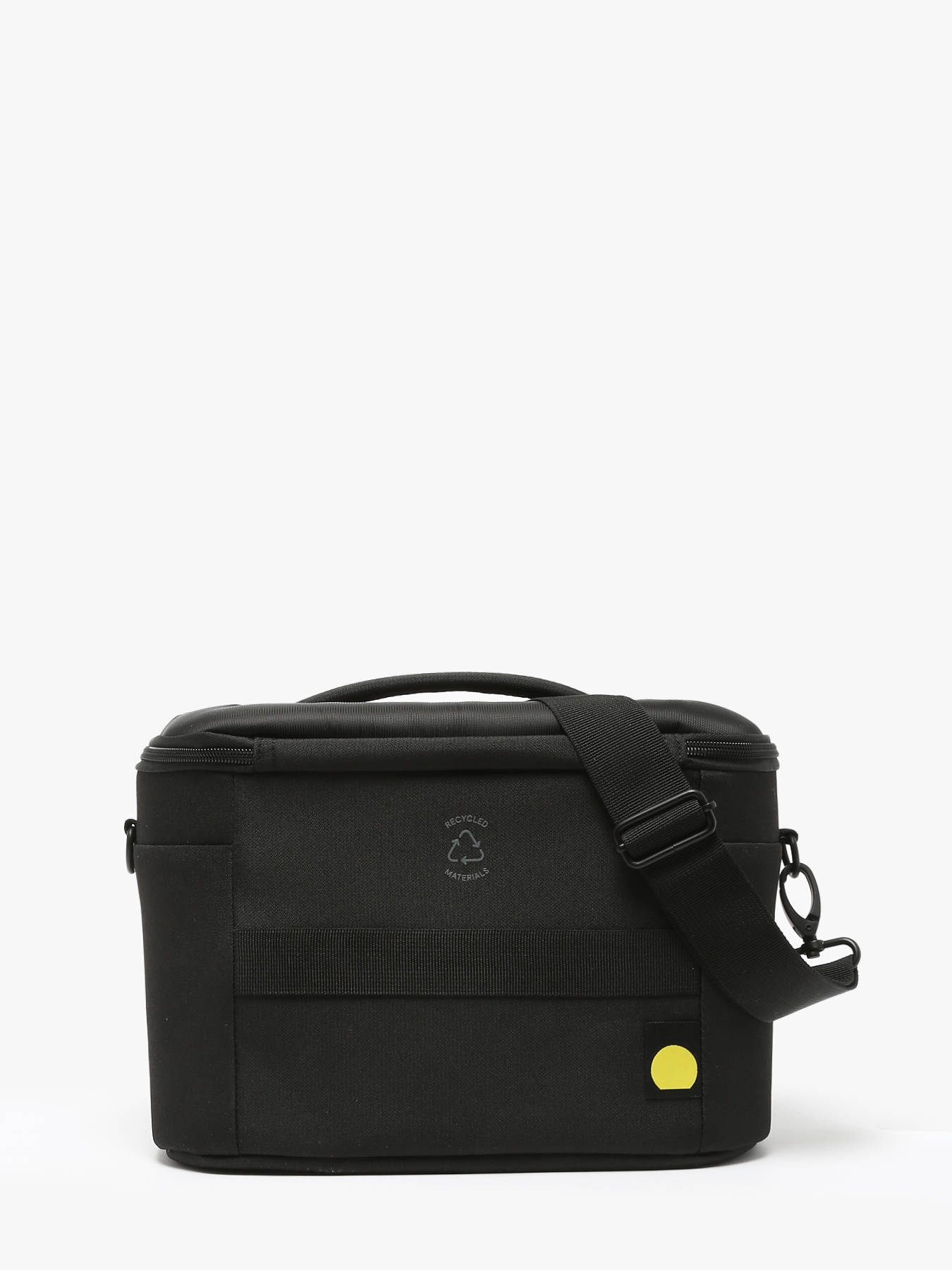 It offers multiple carrying options: by hand with its reinforced handle, crossbody with the adjustable and removable shoulder strap, or attached to a suitcase using its trolley strap. The main compartment is secured with a zipper closure and features three inner pockets for better organization.