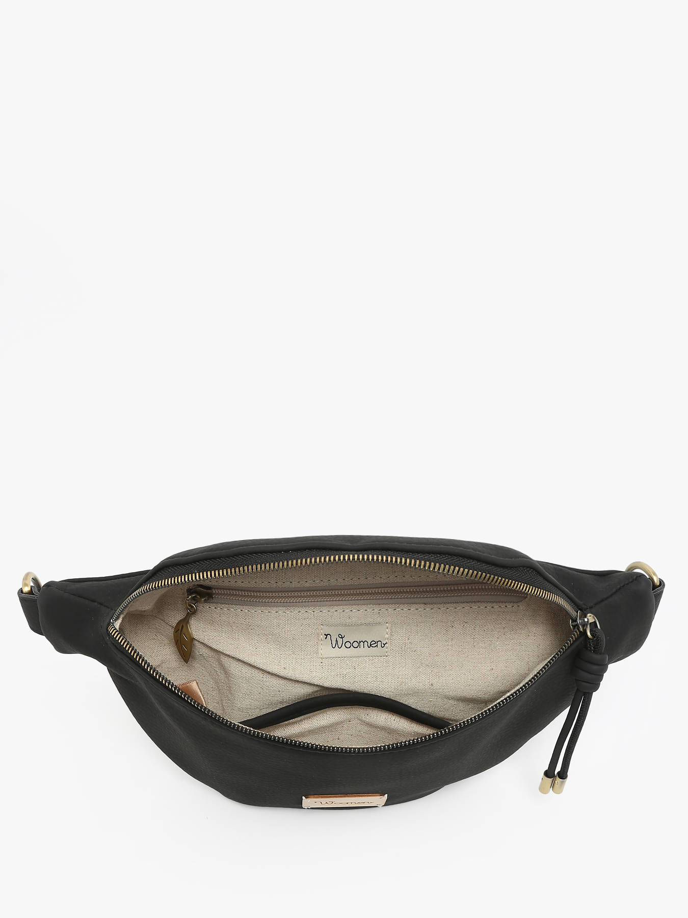 This belt bag from WOOMEN's MUSCARI line is made from recycled polyurethane with a grained effect and a peach-skin feel. It features a zippered closure and comes with an adjustable, removable strap, allowing it to be worn around the waist or across the chest. Inside, it includes a slip pocket, a zippered pocket, and a single compartment for practical organization.