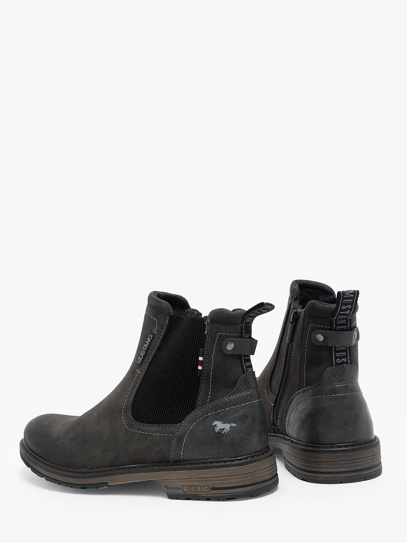The MUSTANG synthetic Chelsea boots are a casual and stylish option for your footwear collection. Designed with a synthetic upper, they offer a modern and easy-to-maintain style. Featuring a textile lining, they provide optimal comfort for your feet. The textile insole adds extra cushioning. The rubber outsole ensures solid grip and increased durability. With the zipper closure, they are easy to slip on and off. These Chelsea boots are perfect for a laid-back everyday look.