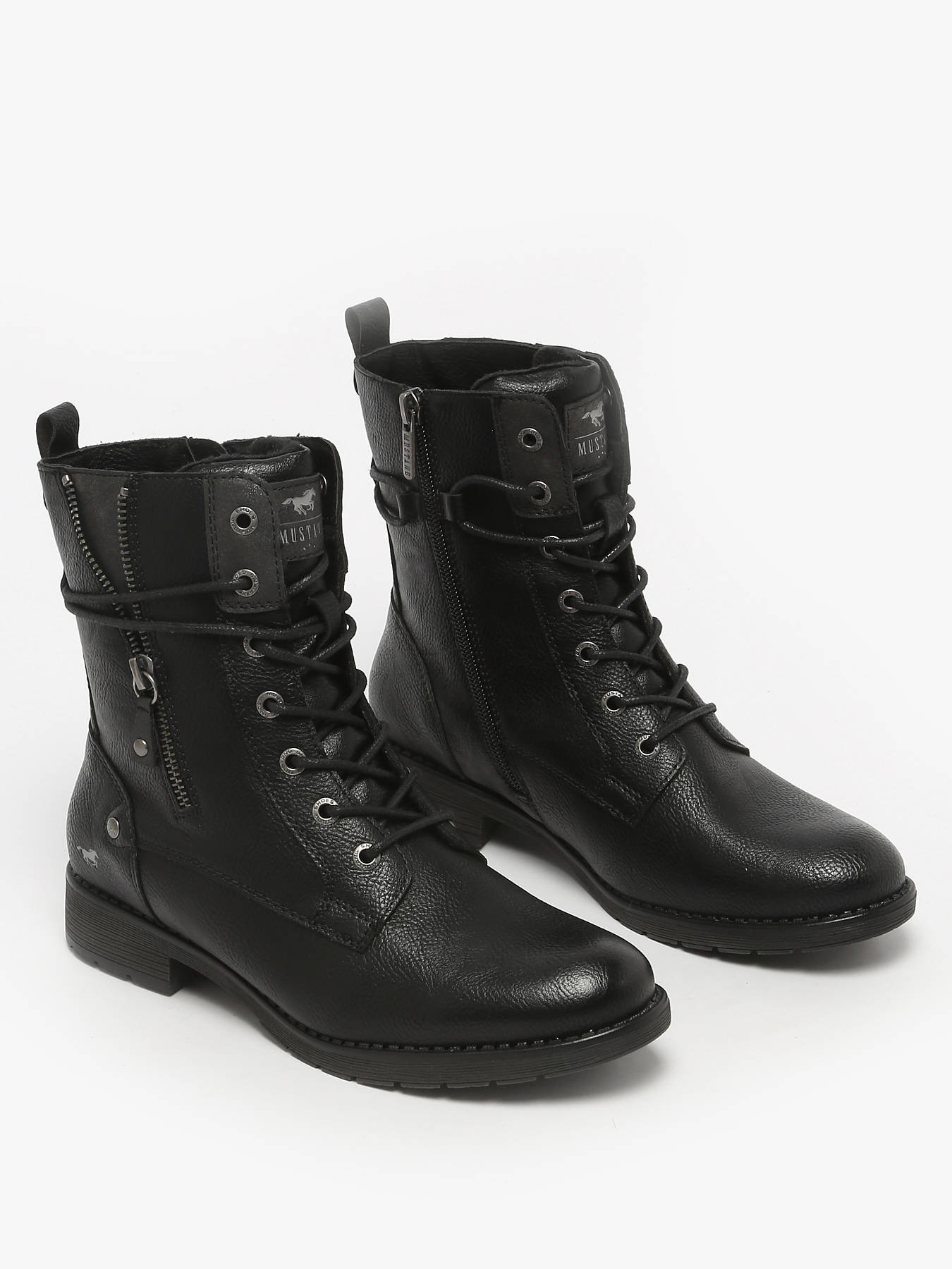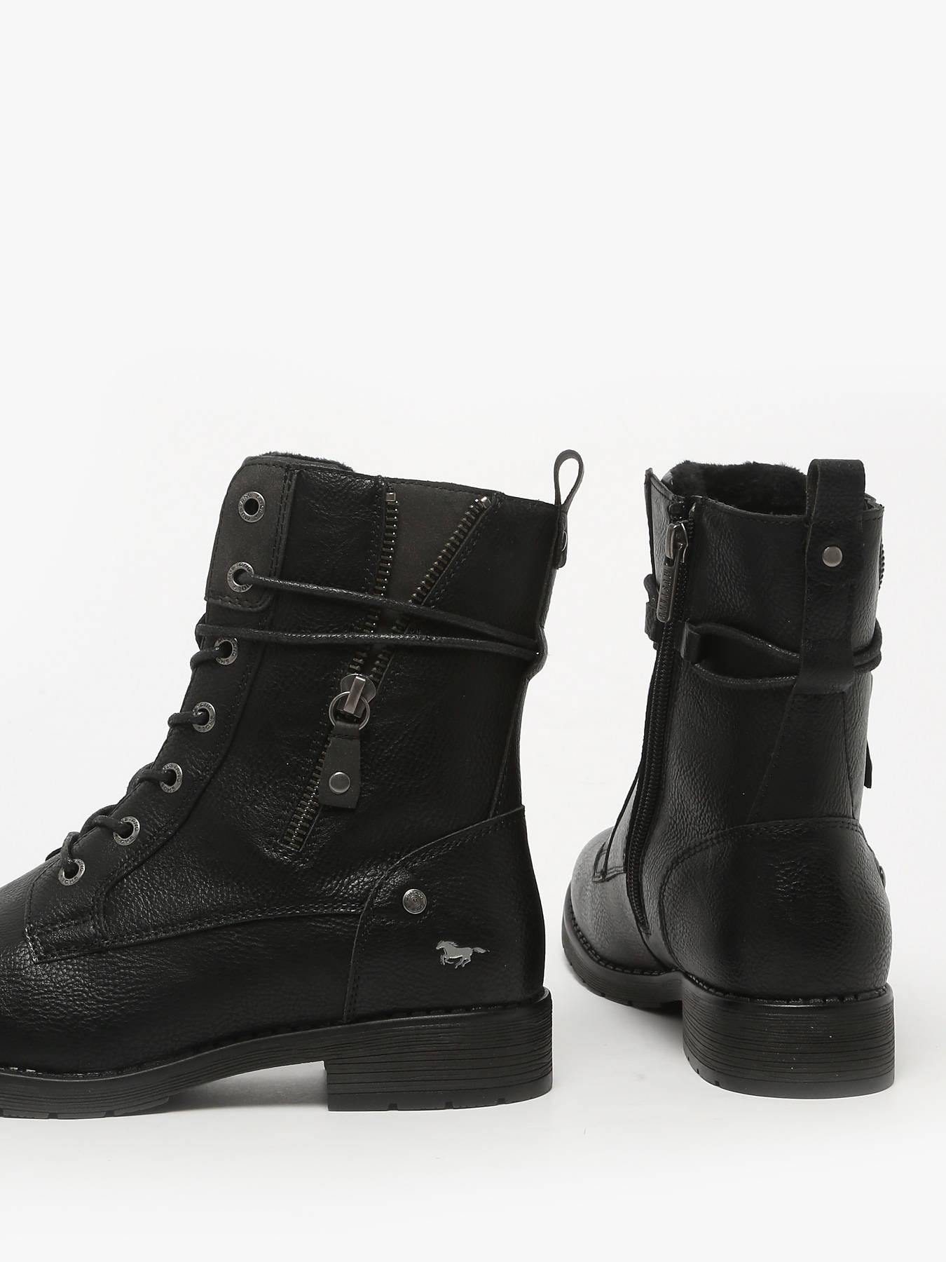 Discover the MUSTANG ANKLE BOOTS, a model combining modern style and optimal comfort, available in brown or black to suit all your outfits. Their smooth synthetic upper provides elegance and durability, while the synthetic fur lining ensures warmth and softness even in cooler weather. The textile insole offers all-day comfort, and the rubber outsole guarantees grip and durability on any terrain. Practical and secure, these boots feature a double closure with laces and a zipper, combining a perfect fit with easy wear. Versatile, they pair equally well with casual looks or more dressed-up outfits, perfectly embodying the Mustang spirit: boldness, comfort, and confident style for every season.