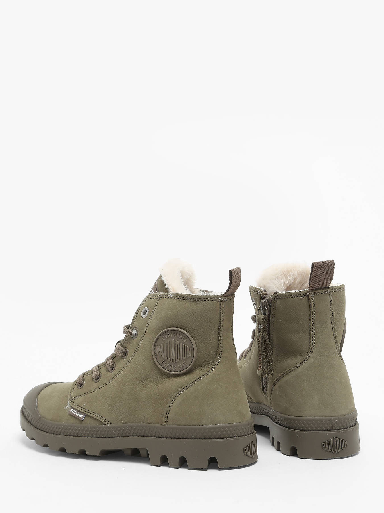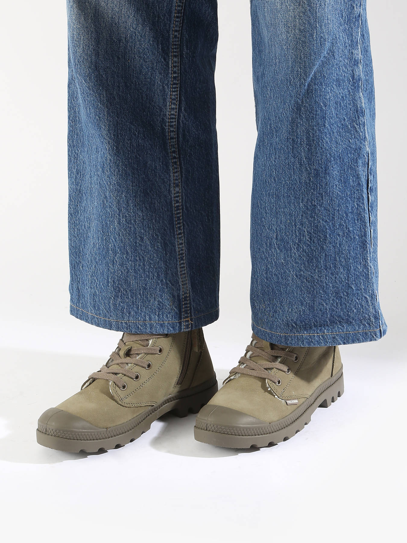 The PALLADIUM leather ankle boots are designed for comfort and style. Made from high-quality leather, they feature a textile lining and a textile insole for optimal comfort. The rubber outsole ensures good grip and enhanced durability. This model closes with laces for a customized fit and a side zipper for easy on-and-off. They fit true to size, and their casual style makes them perfect for everyday wear while maintaining an elegant touch.