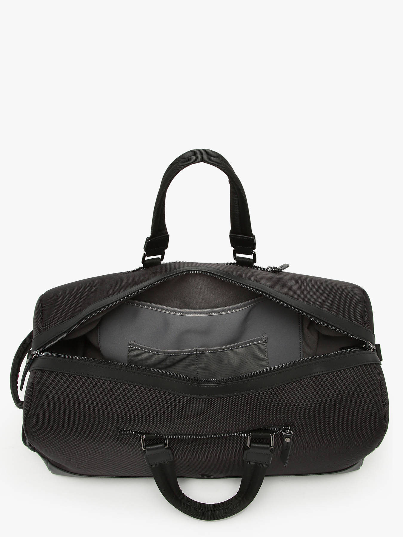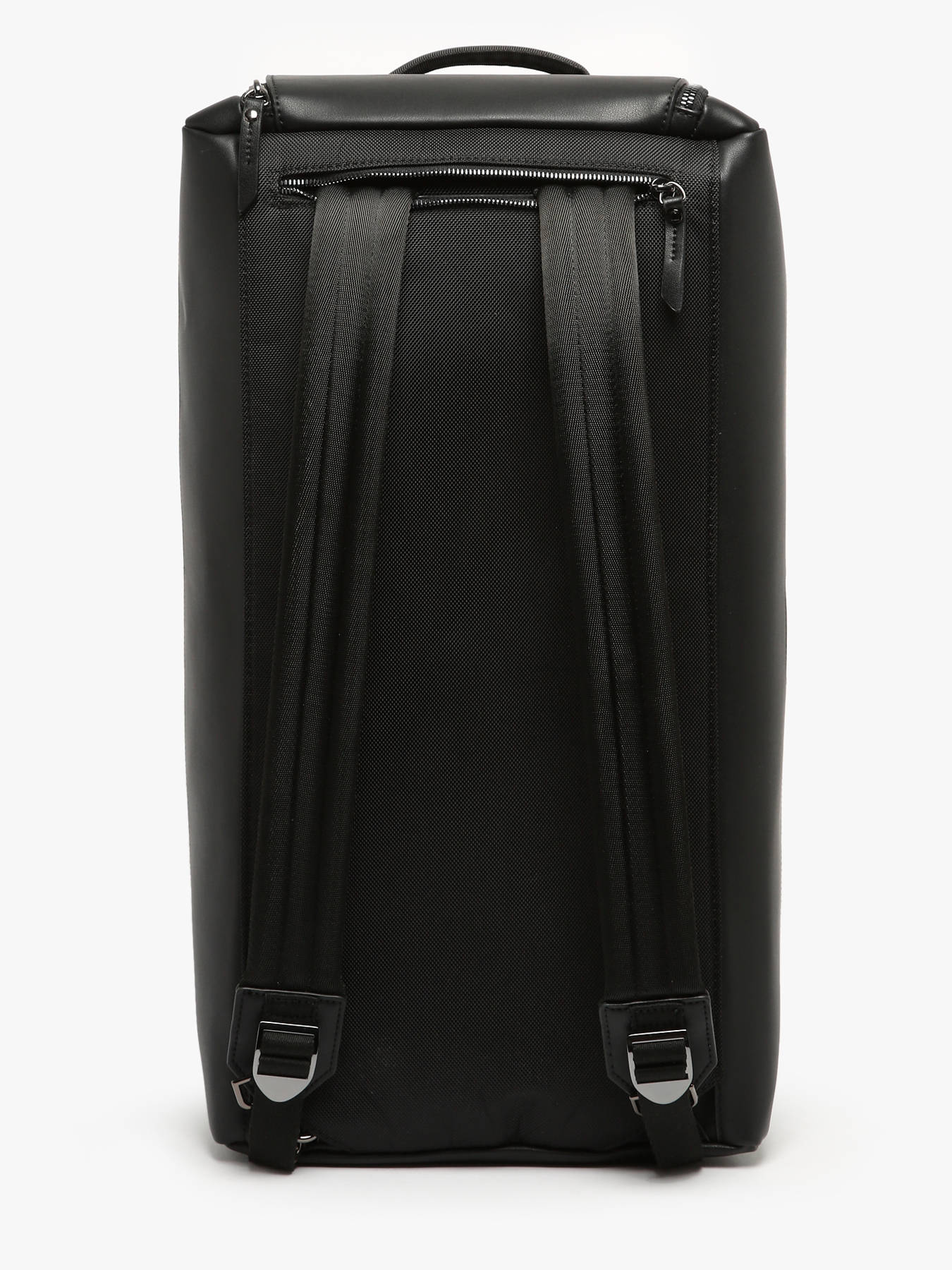 From the Ruade line, this Etrier cabin travel backpack in dual material combines split leather with polyester trim for a refined, durable look. Designed to be worn as a backpack with straps at the bottom, it features stowable handles in the side pockets, a side shoe pocket, and a padded interior compartment for a 13-inch laptop, perfect for stylish getaways.