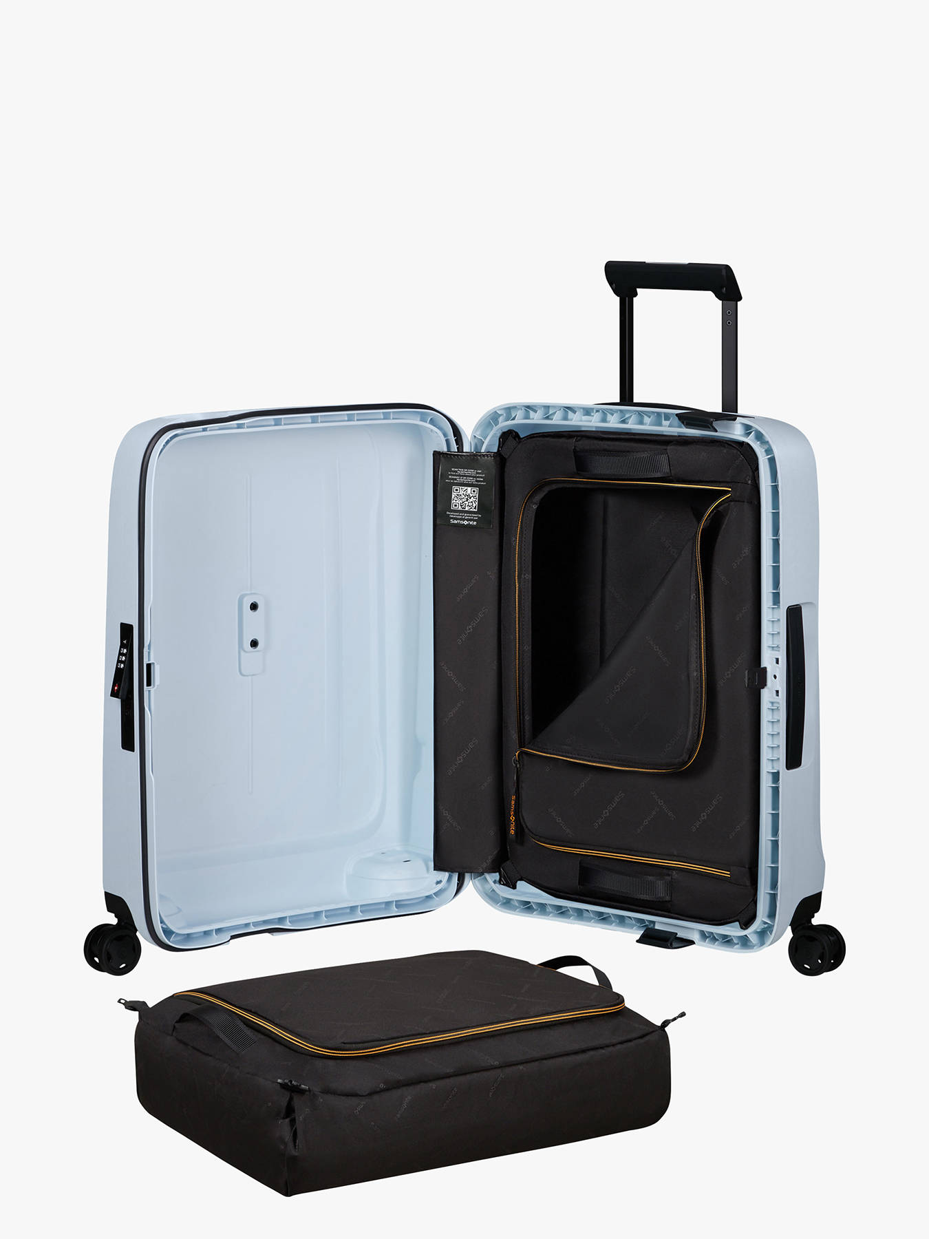 This SAMSONITE cabin suitcase is designed to meet your weekend travel needs. With its size suitable for cabin luggage, you can take it with you on your airplane journeys. It features a TSA code lock for the security of your personal belongings. Its telescopic handle makes transportation easy, and it can be carried by hand. Inside, it has two convenient compartments and two zippered pockets to organize your belongings. Made of polyester, this suitcase is both lightweight and durable.