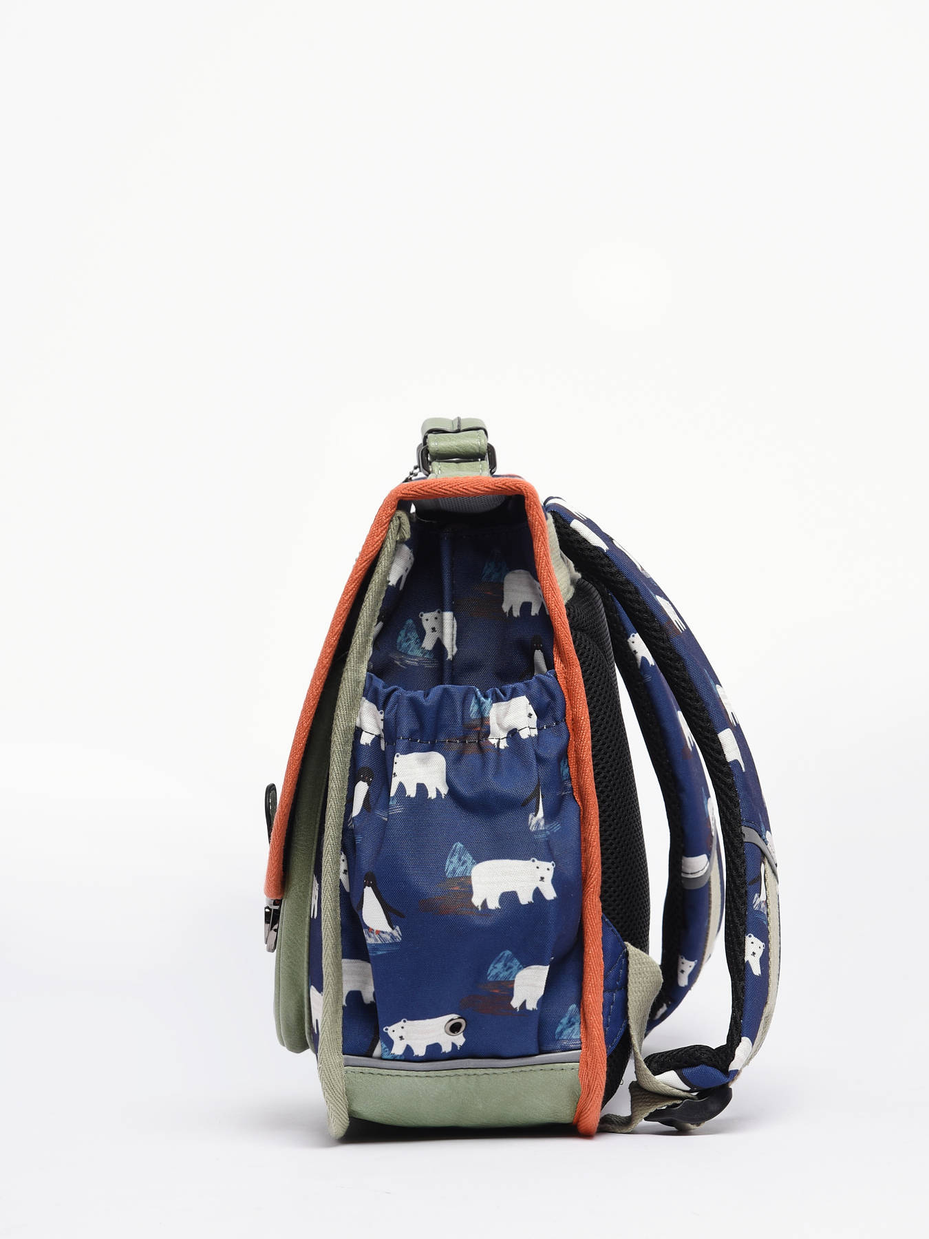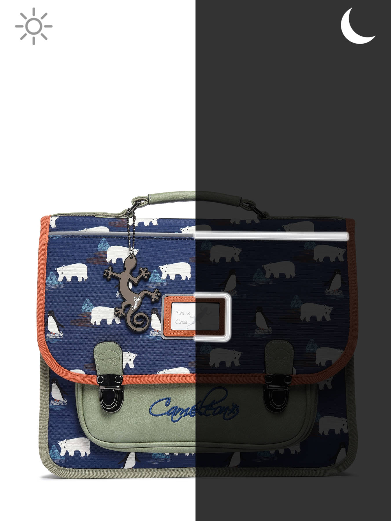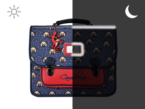 35 cm - 13 litres - 0.89 kg ~ Cartable enfant 35cm de la ligne Retro signé Caméléon, idéal pour la maternelle ou le CP. Ce cartable enfant se divise en 2 compartiments pouvant contenir les formats cahiers 21x29,7 cm et 24x32 cm. On retrouve à l'intérieur du cartable enfant un emplacement spécial règle et une poche zippée centrale. La poche avant simple est parfaite pour y glisser le goûter. Conçu pour le confort des enfants, le dos et les bretelles de ce cartable 35cm sont renforcés. Fabriqué à partir de polyester recyclé imperméable. Enfin, côté sécurité, des bandes réfléchissantes sont prévues autour du sac. Petit plus, un emplacement pour la gourde est situé sur le côté du cartable. Une règle est offerte dans ce cartable !