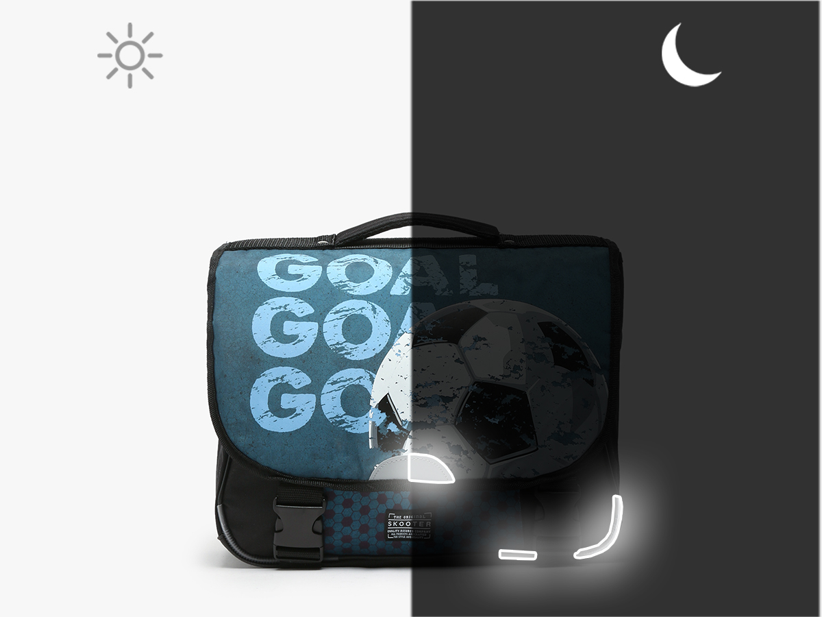 38 cm - 15 litres - 0.76 kg ~ Le cartable SKOOTER pour garçon de 6 à 8 ans est conçu en polyester robuste. Il possède deux compartiments principaux, une poche avant avec rabat et fermoir, et une poche éclair intérieure. Les bretelles réglables offrent un confort optimal, et le cartable peut être porté à la main ou au dos. Il est suffisamment spacieux pour contenir un dossier A4, un cahier jusqu'au format 24x32 cm, ainsi qu'un classeur A4 ou 17x22 cm, idéal pour les besoins scolaires.