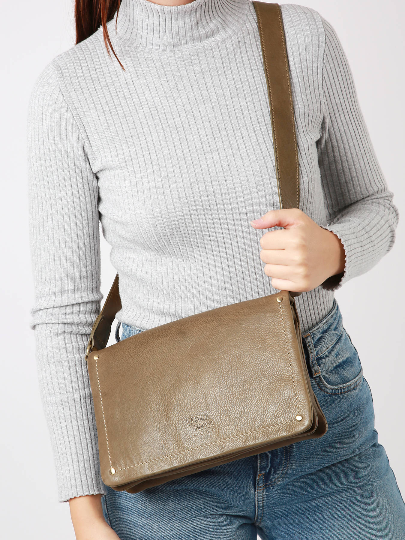 Crossbody bag Boston leather BASILIC PEPPER