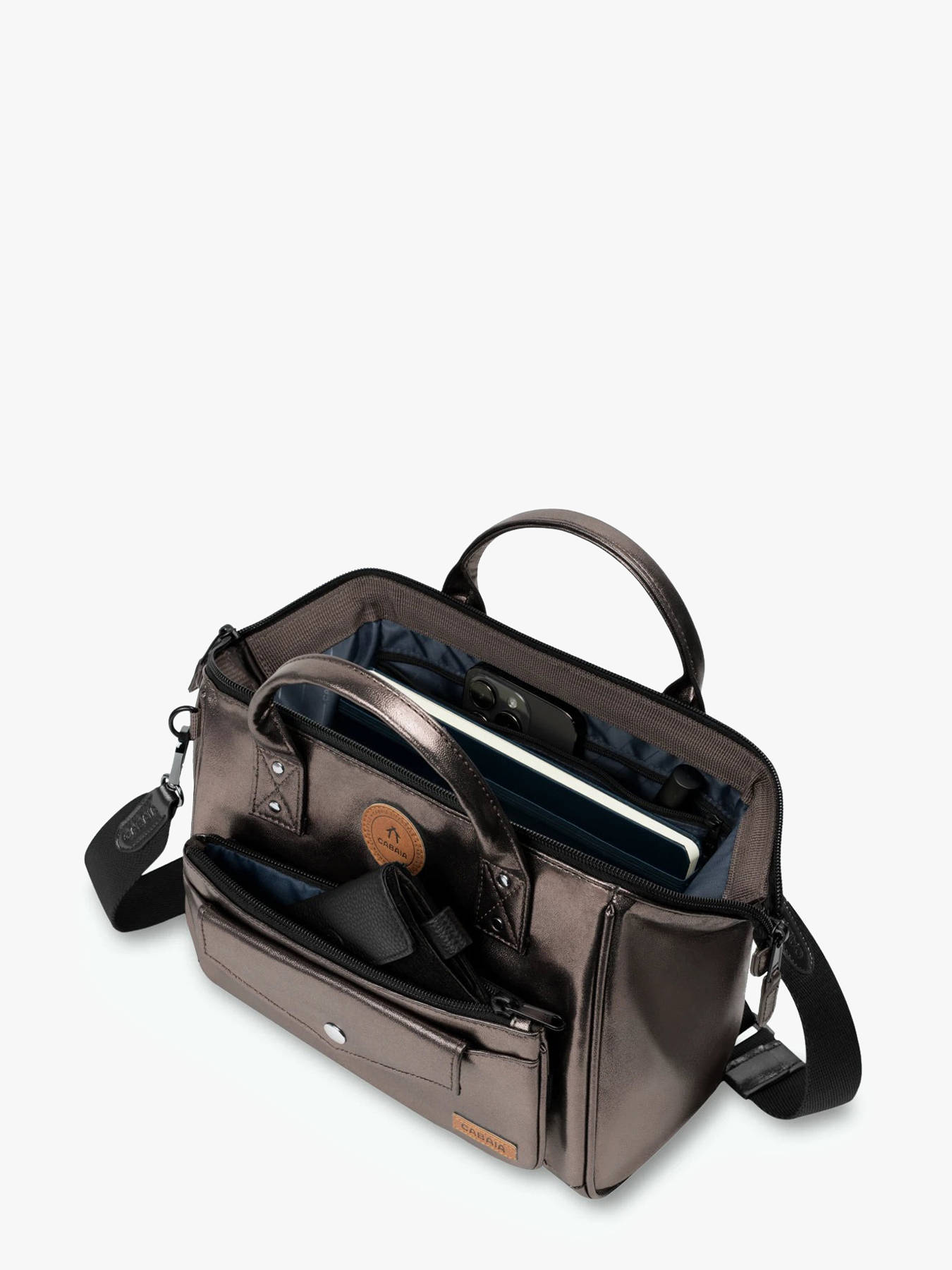 The CABAIA crossbody bag, made from recycled polyester, is both eco-friendly and practical. On the outside, it features a front pocket and a back pocket for quick access to your small essentials. Its zip closure ensures the security of your belongings. The adjustable and removable shoulder strap allows you to wear it crossbody or by hand, depending on your preference. Inside, two simple pockets, one zippered pocket, and a main compartment provide optimal organization for your personal items. This bag combines functionality and environmental responsibility, making it perfect for everyday use.