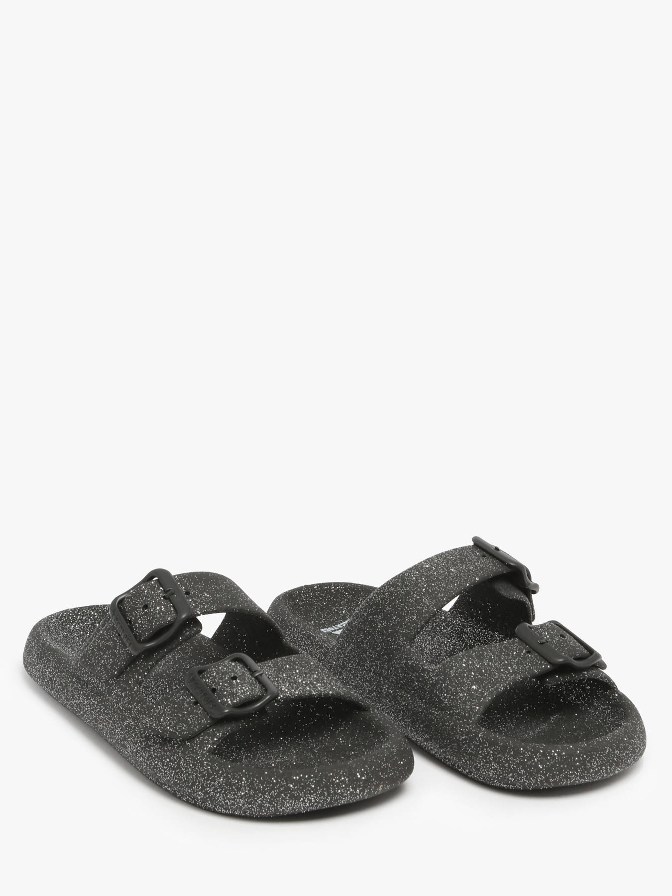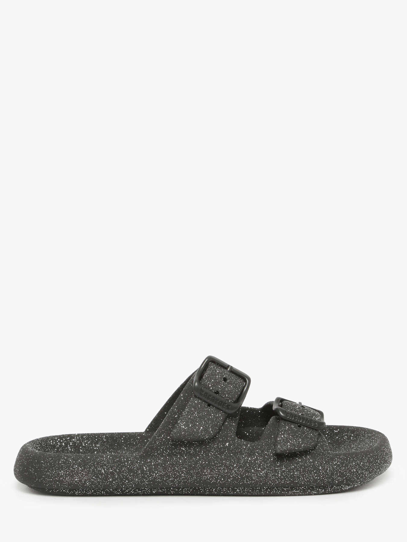 Discover the JESSY GLITTER slides from the CACATOES brand, a fashionable model with an irresistible design. Made with a synthetic iridescent finish upper, they add a bright and modern touch to all your summer outfits. Their synthetic insole ensures optimal comfort throughout the day. Note, this model runs small, so it is recommended to size up for a perfect fit. The slides close with practical buckles, providing secure and personalized support. Ideal for a trendy and casual look, the JESSY GLITTER slides are the essential glamorous touch for your wardrobe. Combine comfort and style with this pair that will enhance your sunny days.