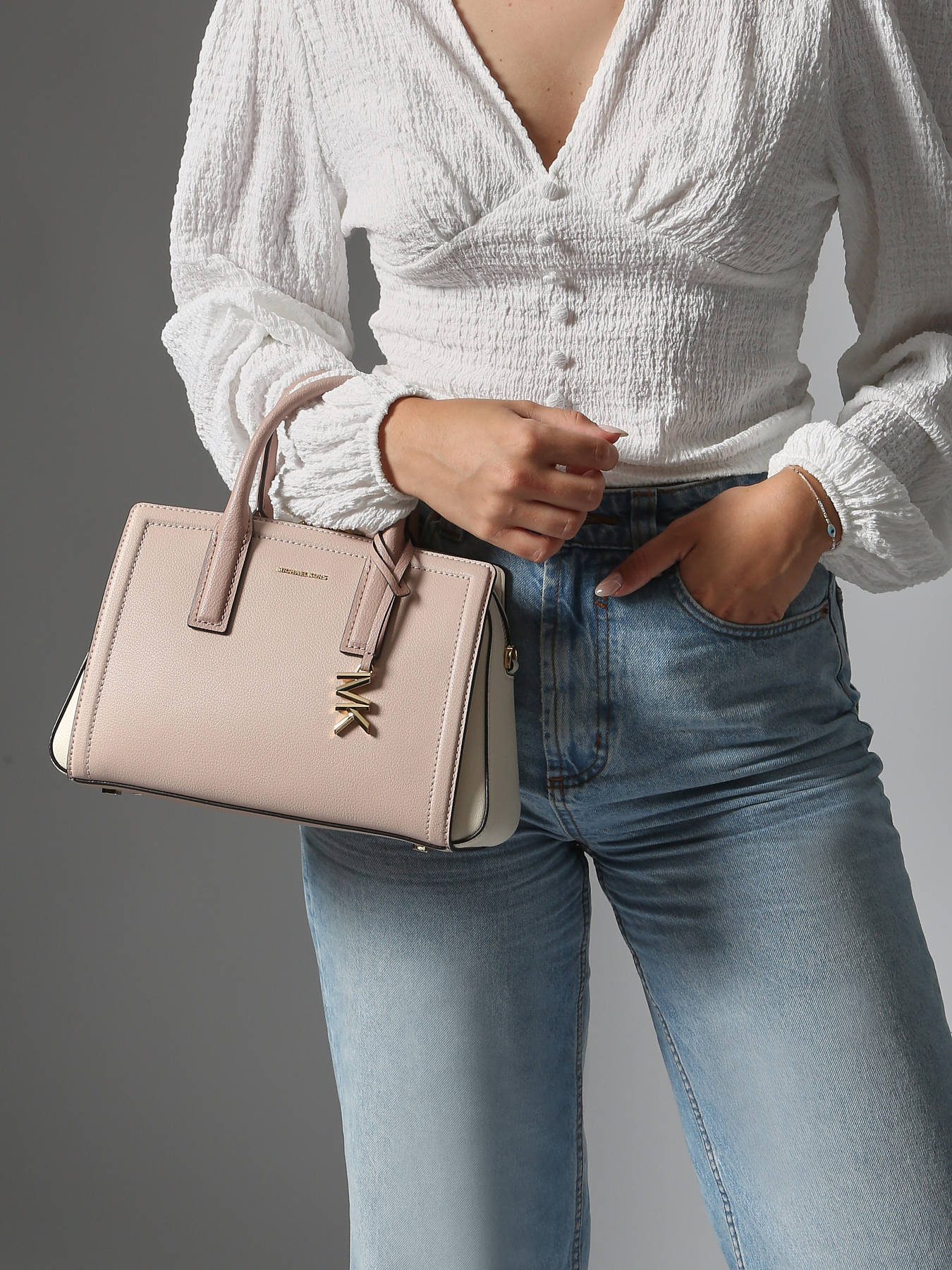 The MICHAEL KORS handheld bag in cowhide leather combines elegance and practicality with a refined, functional design. It features one front pocket and one back pocket, perfect for quick access to essentials. The zip closure secures your belongings while allowing easy opening. The adjustable and removable strap offers the option to carry it by hand or crossbody, according to your preference. Inside, a spacious main compartment is complemented by one open pocket and one zip pocket for optimal organization. This versatile bag perfectly complements all your outfits, from everyday wear to dressier occasions, with style and comfort.