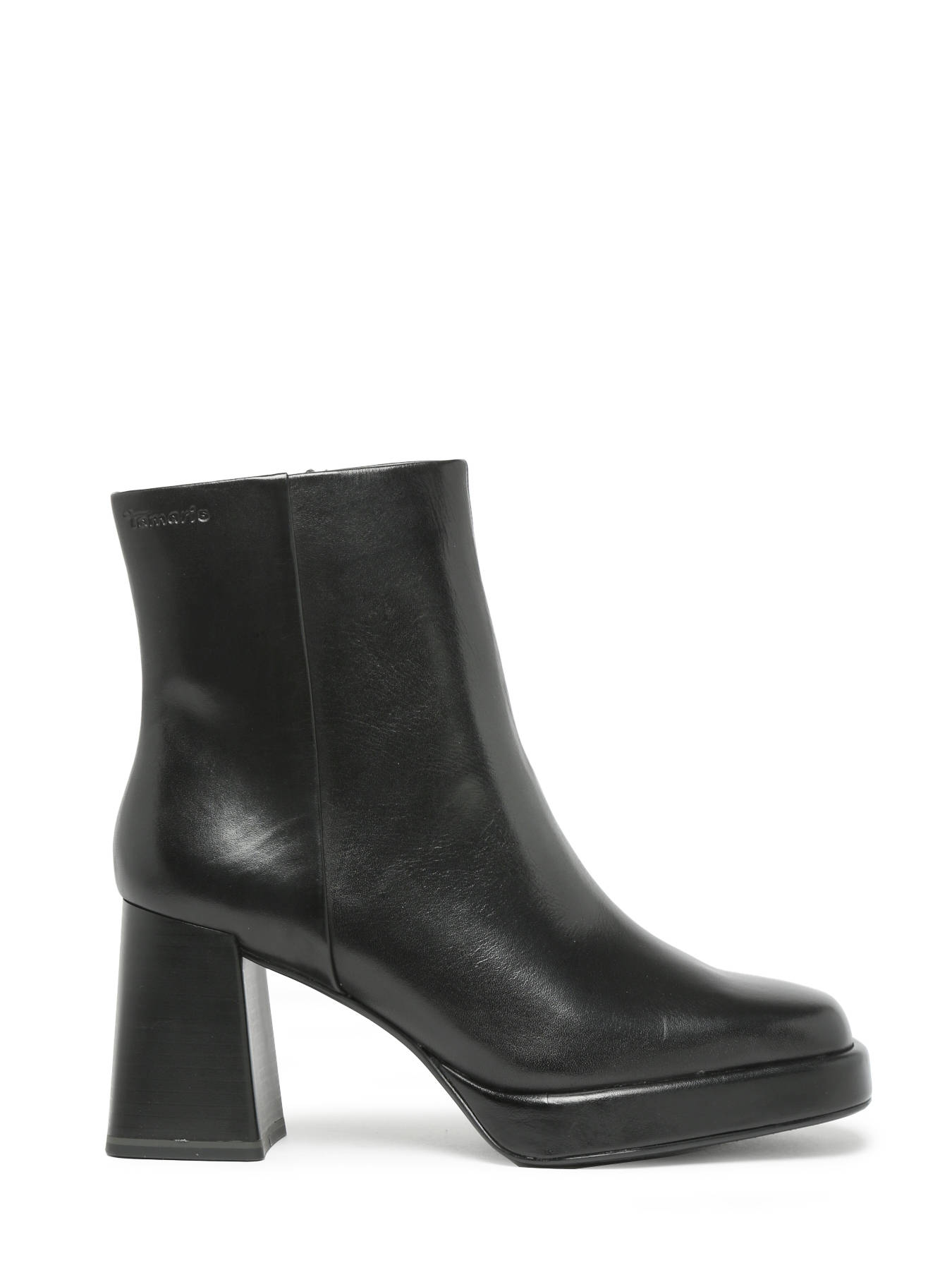 Discover the elegant leather heeled ankle boots by TAMARIS, perfect for adding a touch of style to your outfits. Made from high-quality leather, they combine comfort and sophistication. This model fits true to size, ensuring a perfect fit. The leather upper provides a refined and durable appearance, while the textile and synthetic lining ensures optimal comfort. The textile insole offers additional cushioning for a pleasant feel with every step. The rubber outsole offers reliable grip and increased stability. With a convenient zip closure, these ankle boots are easy to put on and take off. The 8 cm heel adds height while remaining comfortable. The fashion style of these boots makes them ideal for special occasions or for elevating your everyday look.