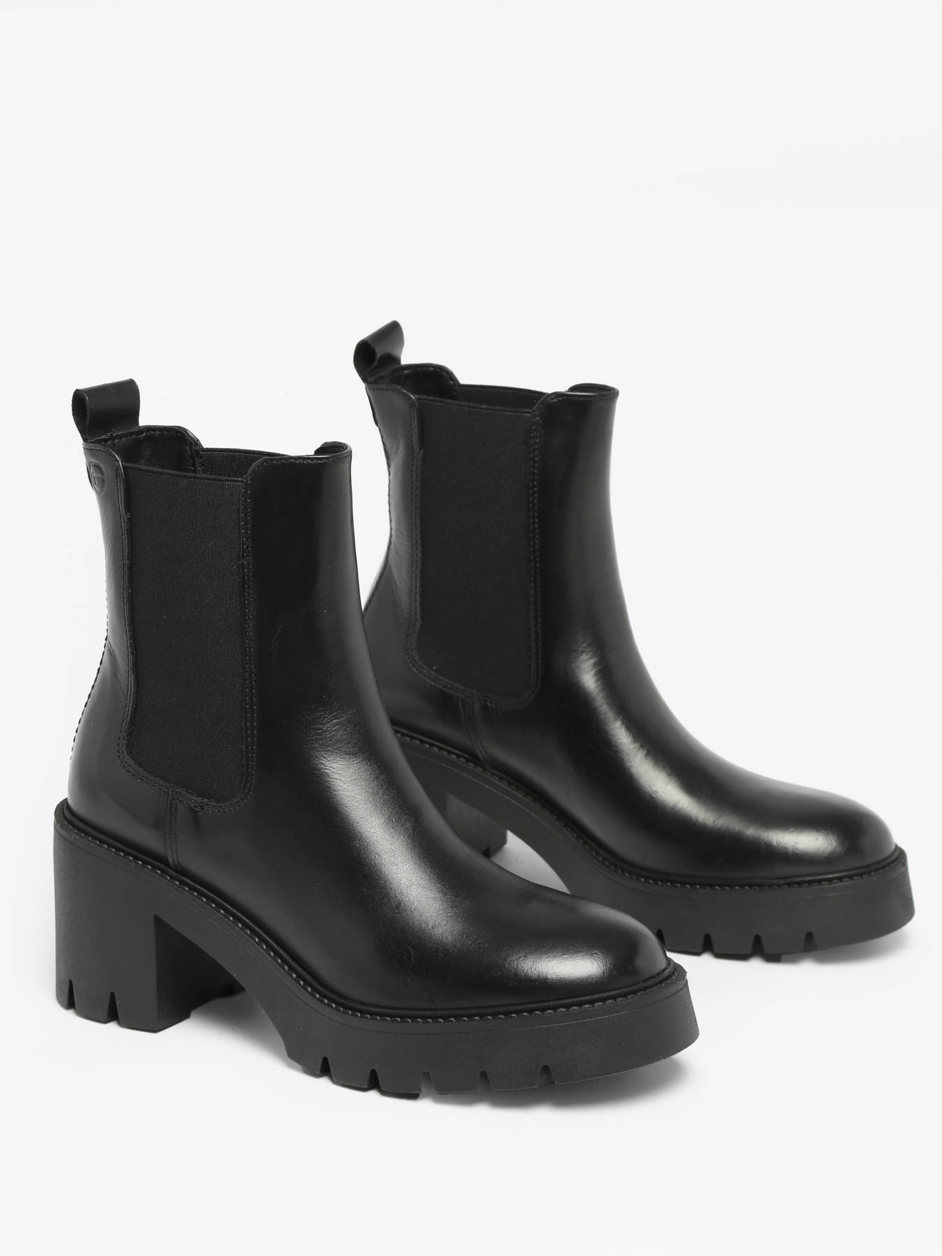 These TAMARIS leather Chelsea boots with heels perfectly embody fashion-forward style and comfort. With their high-quality leather and textile composition, they combine elegance and durability. This model fits true to size, ensuring a perfect fit for your feet. The leather and textile upper adds a touch of uniqueness and sophistication to these ankle boots. The textile and synthetic lining provide a soft and pleasant interior to wear. The textile insole ensures additional comfort throughout the day. The elastic closure allows for easy and quick slipping on of the boots. With a 7.5 cm heel height, these Chelsea boots will give you a feminine and trendy look, perfect for elevating your fashion outfits.