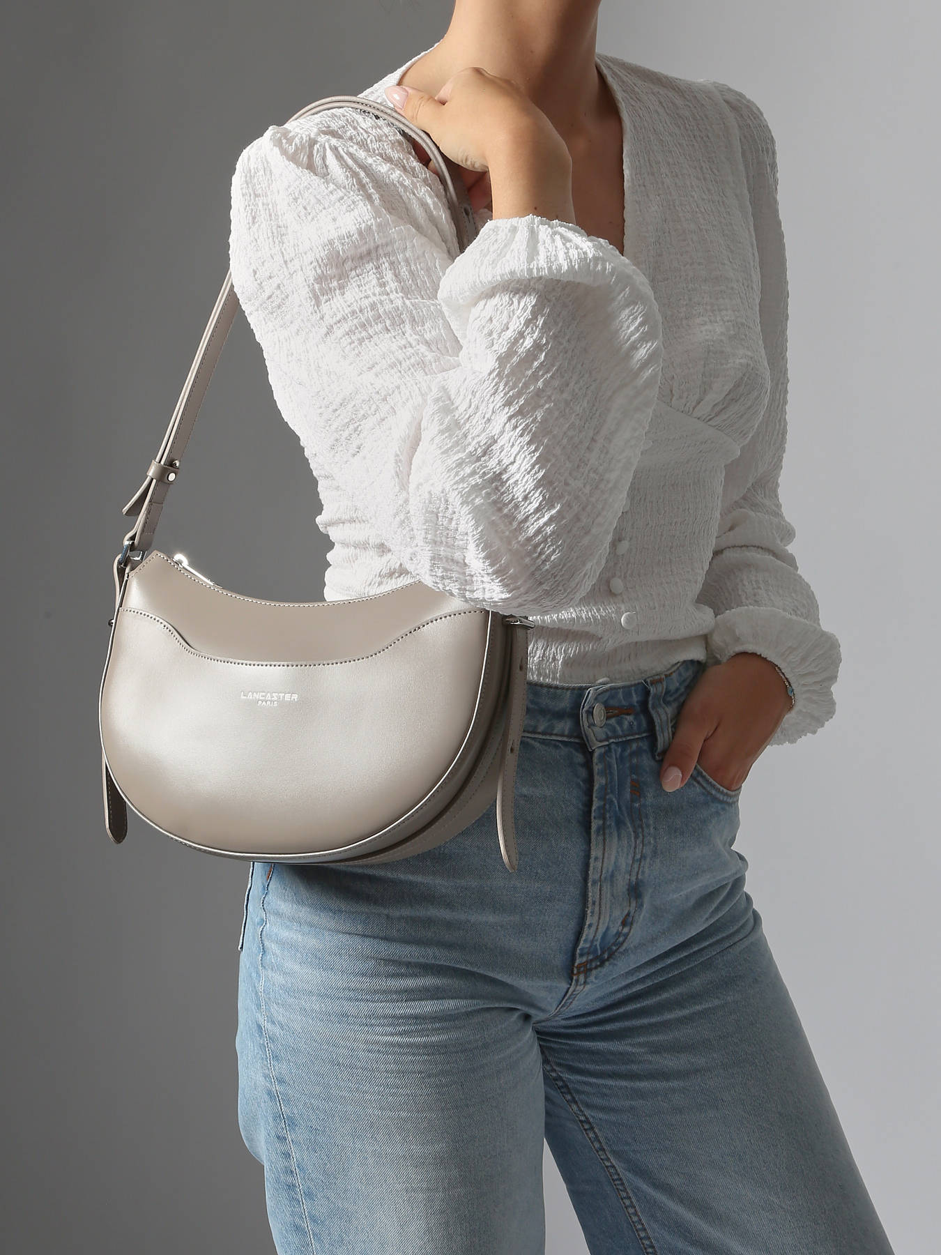 You will love its half-moon shape which allows you to slip in all your daily essentials: wallet, phone and keys. Inside this Lancaster shoulder bag, you will find two simple pockets and a zipped pocket allowing you to store your small items.