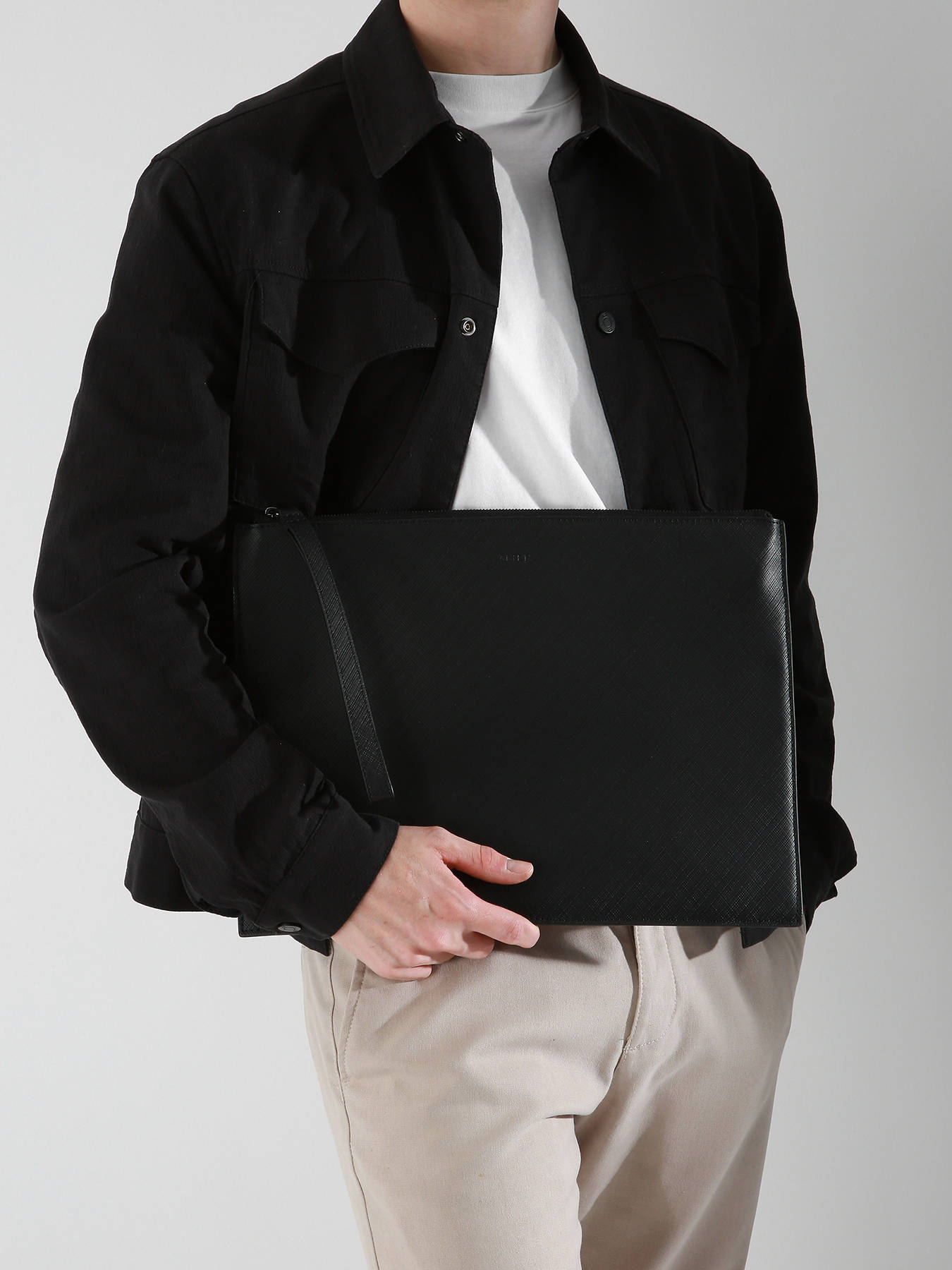 This laptop sleeve from the Flèche line, made of textured leather, offers elegant and sturdy protection for your device. Its sleek design combines sophistication and practicality, ensuring secure transport for your laptop. This pouch is cleverly designed with two integrated pockets on the back, ideal for slipping in and organising your papers.