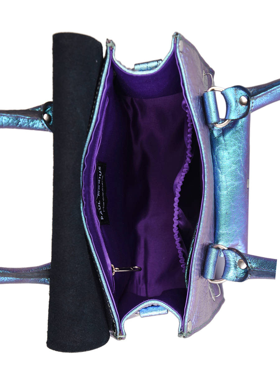 Le sac à main femme Rive Gauche créé par Paul Marius revêt ce superbe bleu nacré pour faire briller votre look. Ce sac à main digne des plus beaux tapis rouge est idéal à transporter au quotidien grâce à ses 2 anses de 14 cm, sa petite poche avant ainsi que son large compartiment intérieur doté de 3 poches. A porter à l’épaule, ce sac à main se porte également croisé grâce à sa bandoulière réglable et amovible. Il se ferme à l’aide d’un rabat et d’un fermoir pour garder tous vos essentiels bien en sécurité