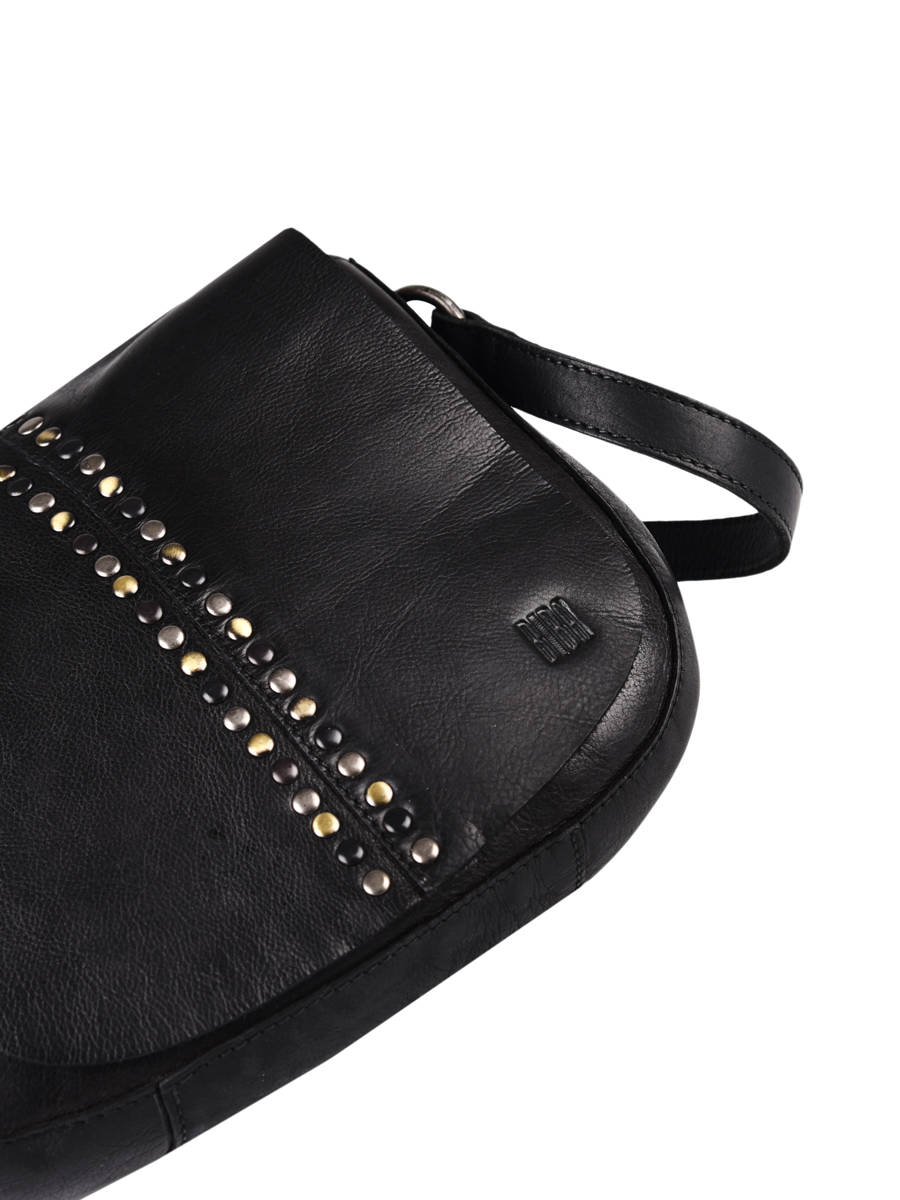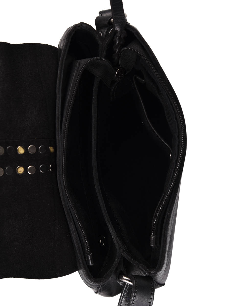 This women's handbag has been made in a nice quality cow skin leather. It is also decorated with small studs on the flap, which gives it a more modern style.