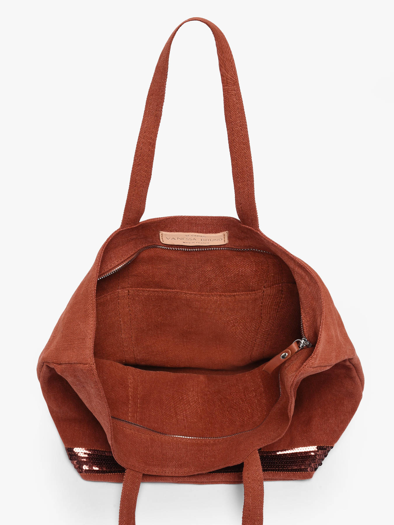 The VANESSA BRUNO linen tote embodies natural elegance and summer lightness. Crafted from high-quality linen canvas, it offers a pleasant feel and an authentic look. A zip closure keeps your belongings secure, while the 23 cm handles ensure comfortable shoulder carry. Inside, a roomy compartment with a zip pocket easily holds all your essentials, including A4 documents, making it the perfect ally for busy days. Both versatile and refined, this tote pairs effortlessly with casual outfits or more dressed-up looks. Its breathable, durable fabric makes it an ideal companion for the warmer season, from the office to the beach, while maintaining the timeless style that defines the VANESSA BRUNO brand.