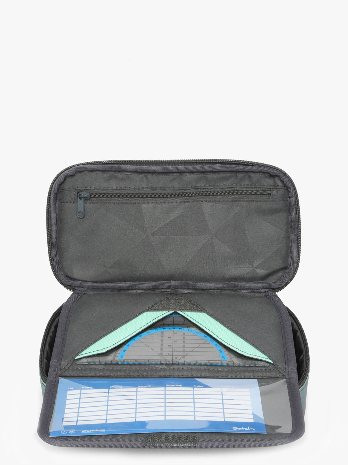 The SATCH single-compartment pencil case is perfect for organizing your essential school supplies. It features a spacious main pocket with a zippered closure, providing easy access to your pencils, pens, and other accessories. Inside the case, you will find a zippered pocket, ideal for storing small items like erasers or paper clips. Moreover, there are elastic loops to keep your pens in place and well-organized. Whether for school or everyday use, this practical pencil case will accompany you in style.