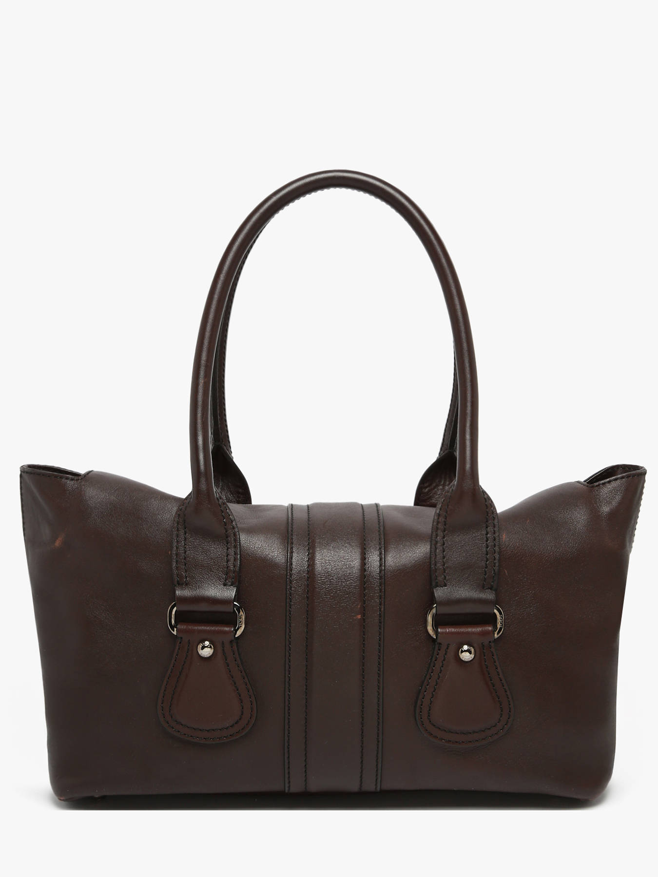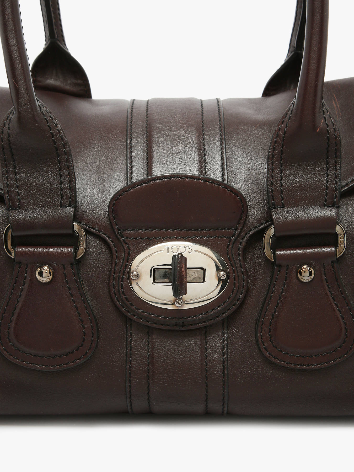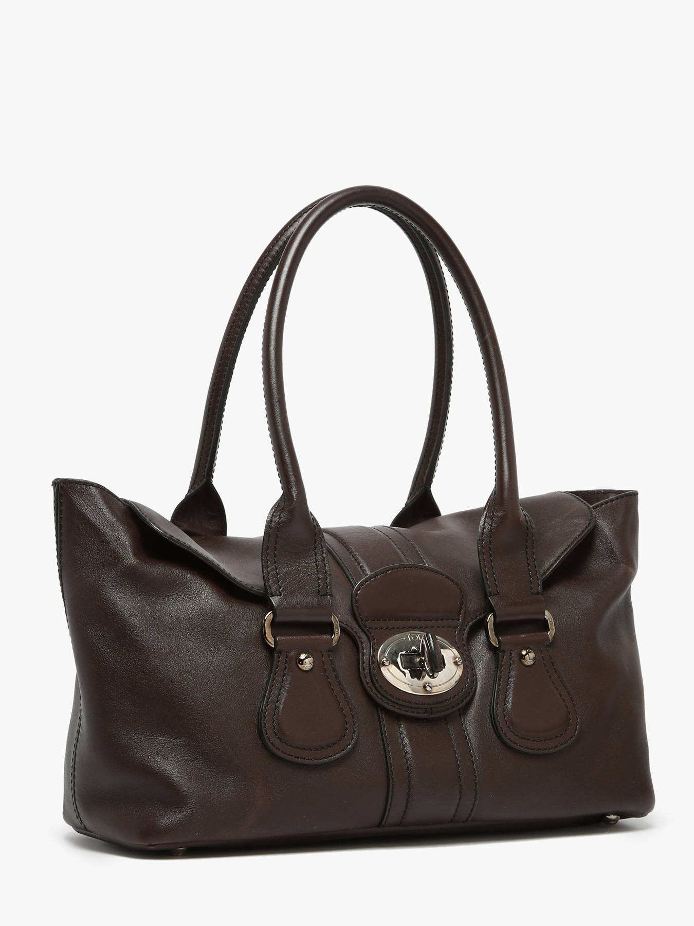TOD'S Turnlock Tote handbag in calfskin leather, a structured design with timeless elegance. It features a flap closure with a refined turn-lock and can be carried by hand or over the shoulder thanks to its 22 cm handles. The spacious interior includes one main compartment and a zipped pocket for optimal organization. This Grade AB bag is in very good condition, with minor signs of wear.