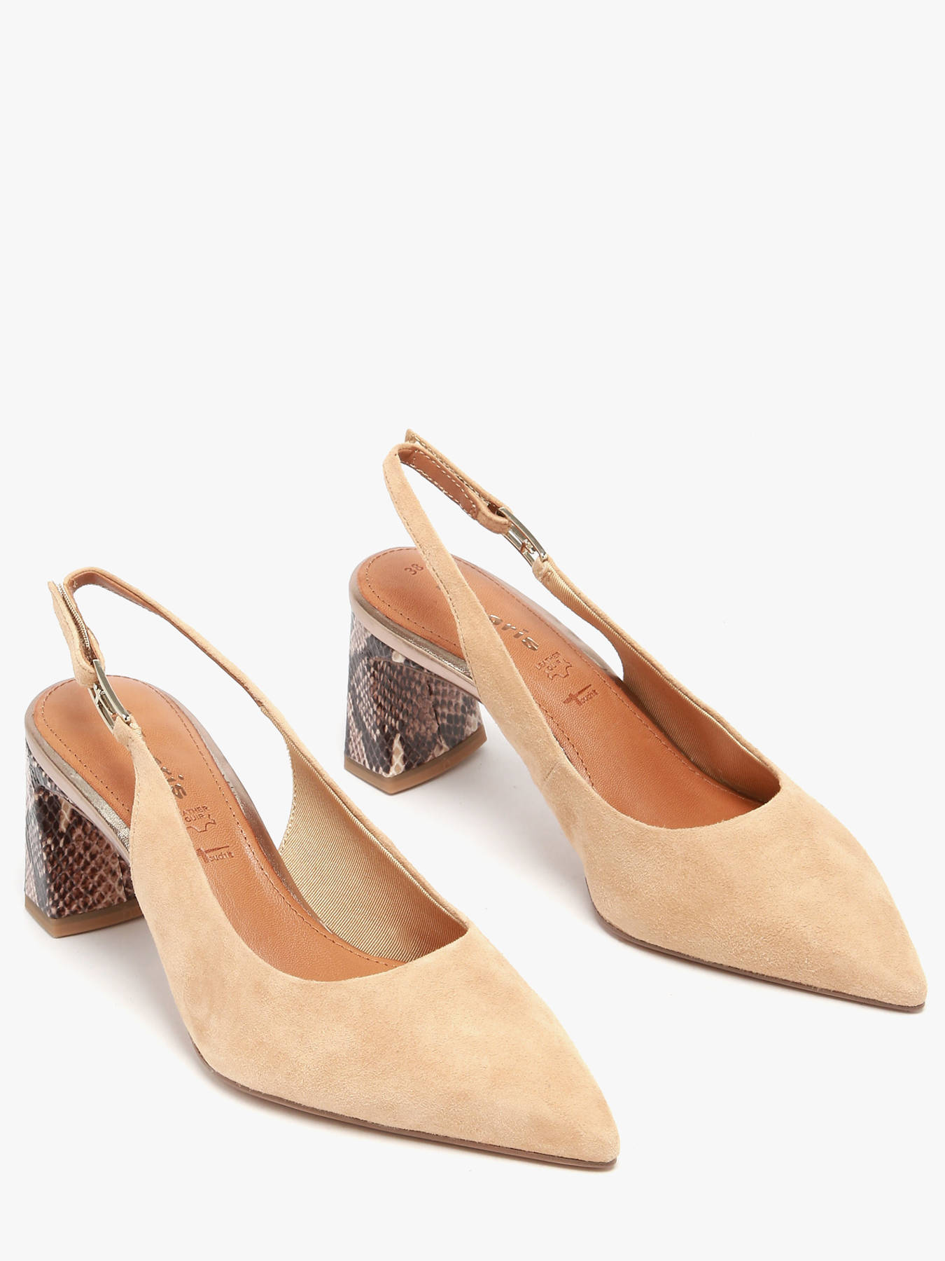 Elegant and timeless, TAMARIS brand pumps embody femininity with refinement. Featuring a sleek silhouette and a tapered front line, they naturally enhance your stride and add a chic touch to all your outfits, from a professional suit to an elegant dress. Their feminine 6.5 cm heel offers the perfect balance between elegance and comfort, ideal for an active day as well as an evening out. Crafted from high-quality smooth leather, they stand out for their careful finish and clean look. The textile lining ensures comfortable wear, while the leather and synthetic insole provides good foot support. Practical, they fasten easily with a discreet Velcro strap, combining style and functionality. A must-have in every woman’s wardrobe.