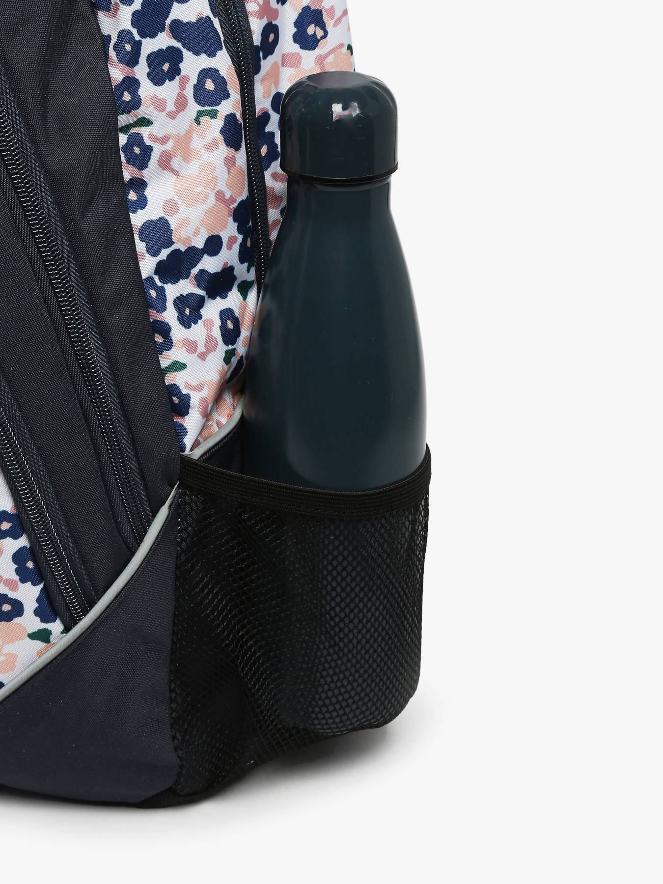 Pratique, il bénéficie d'une petite poche intérieure simple ainsi qu’un organisateur de stylos dans le premier compartiment. À l’intérieur du deuxième compartiment se trouvent une grande poche simple et un séparateur pour trier ses cahiers et livres. À l’extérieur, deux poches filets latérales permettent un rangement supplémentaire, dont une spécialement conçue pour y glisser une gourde.