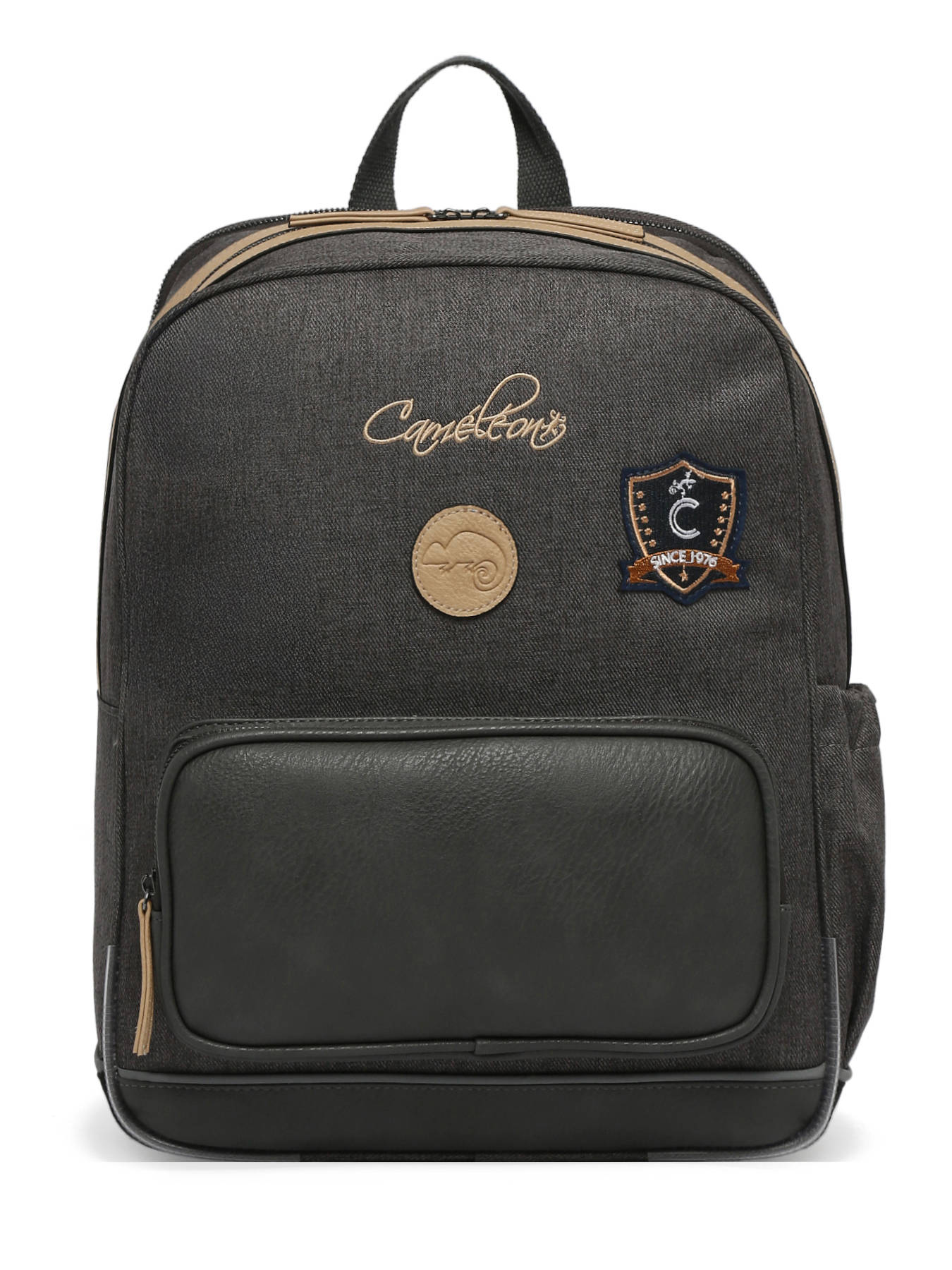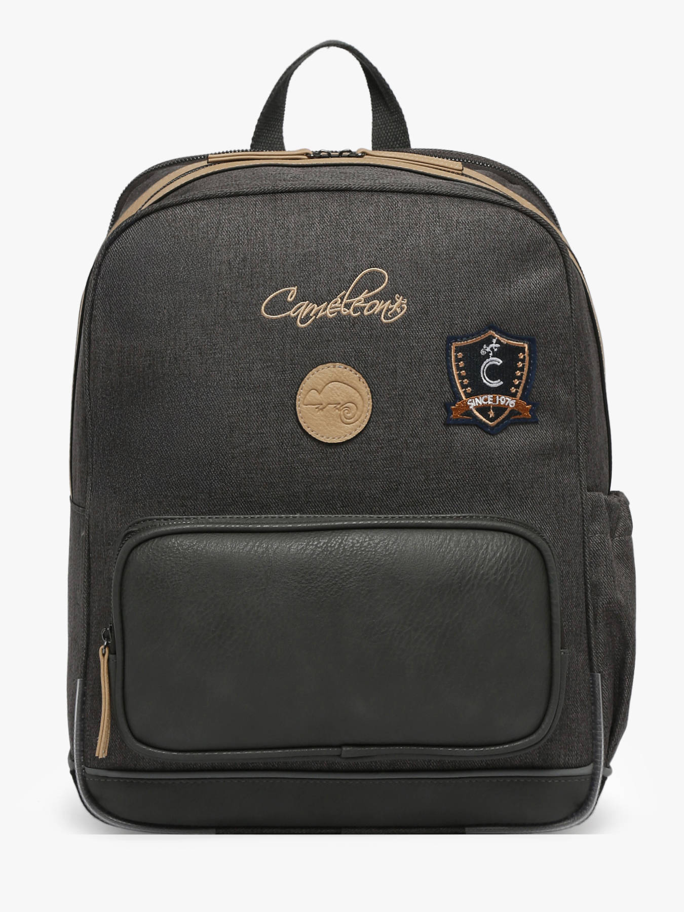 40 cm - 17 litres - 0.78 kg ~ Ce sac à dos 2 compartiments 40cm de la ligne Vintage Urban de chez Caméléon est parfait pour le CE2, CM1 et CM2. Pour une organisation optimale, il se compose de deux compartiments spacieux, permettant d’y glisser un classeur pouvant aller jusqu’à 26x32x4 cm. Pratique, à l’extérieur il dispose d’une poche à fermeture éclair sur le devant ainsi que d’un porte gourde latéral. Son fond ainsi que ses côtés sont renforcés, permettant une utilisation quotidienne. Conçu pour le confort de votre enfant, il dispose du dos et des bretelles rembourrés. Une bande réfléchissante est visible sur l’avant afin de garantir une sécurité optimale. Petit plus, il dispose d’une étiquette nom.