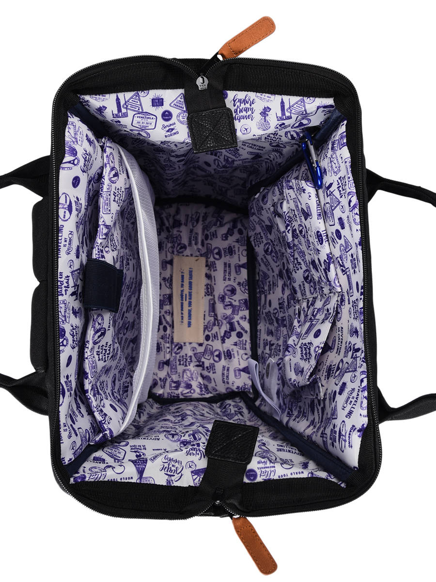 Ce sac à dos Cabaïa de la ligne Tour du Monde se porte sur le dos en utilisant les bretelles réglables ou à la main grâce à l'anse et peut s’accorder avec bon nombre de tenues.