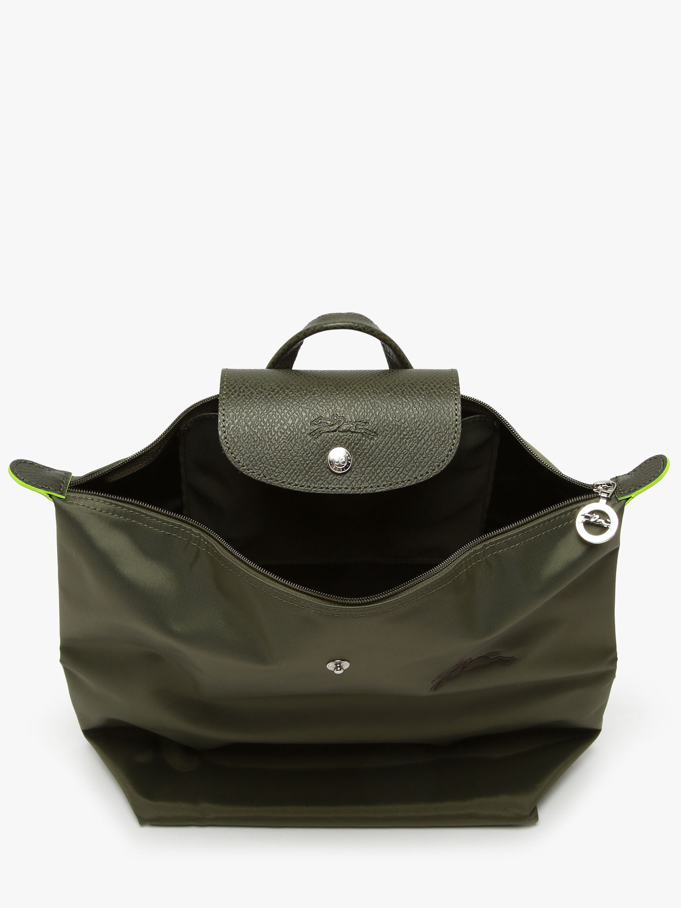 Le sac à dos M Le Pliage de Longchamp allie légèreté, praticité et respect de l’environnement. Fabriqué en toile de nylon recyclé et garni de cuir, ce sac se distingue par sa fermeture zippée, son rabat avec pression, et ses bretelles réglables pour un confort optimal. Son design spacieux permet de transporter un ordinateur 16 pouces et autres essentiels, tandis que sa palette de couleurs ton sur ton et la broderie du cheval Longchamp ajoutent une touche élégante et moderne. Légèrement pliable, ce sac incarne l’esprit dynamique et créatif de la Maison. La ligne Pliage Green est un modèle éco-responsable avec sa toile en polyamide recyclé certifiée GRS 4.0, un gage de durabilité et de respect des ressources naturelles. La teinture de tranche verte et les garnitures en cuir de Russie soulignent le style unique et l’engagement écologique de Longchamp pour un look chic et responsable.