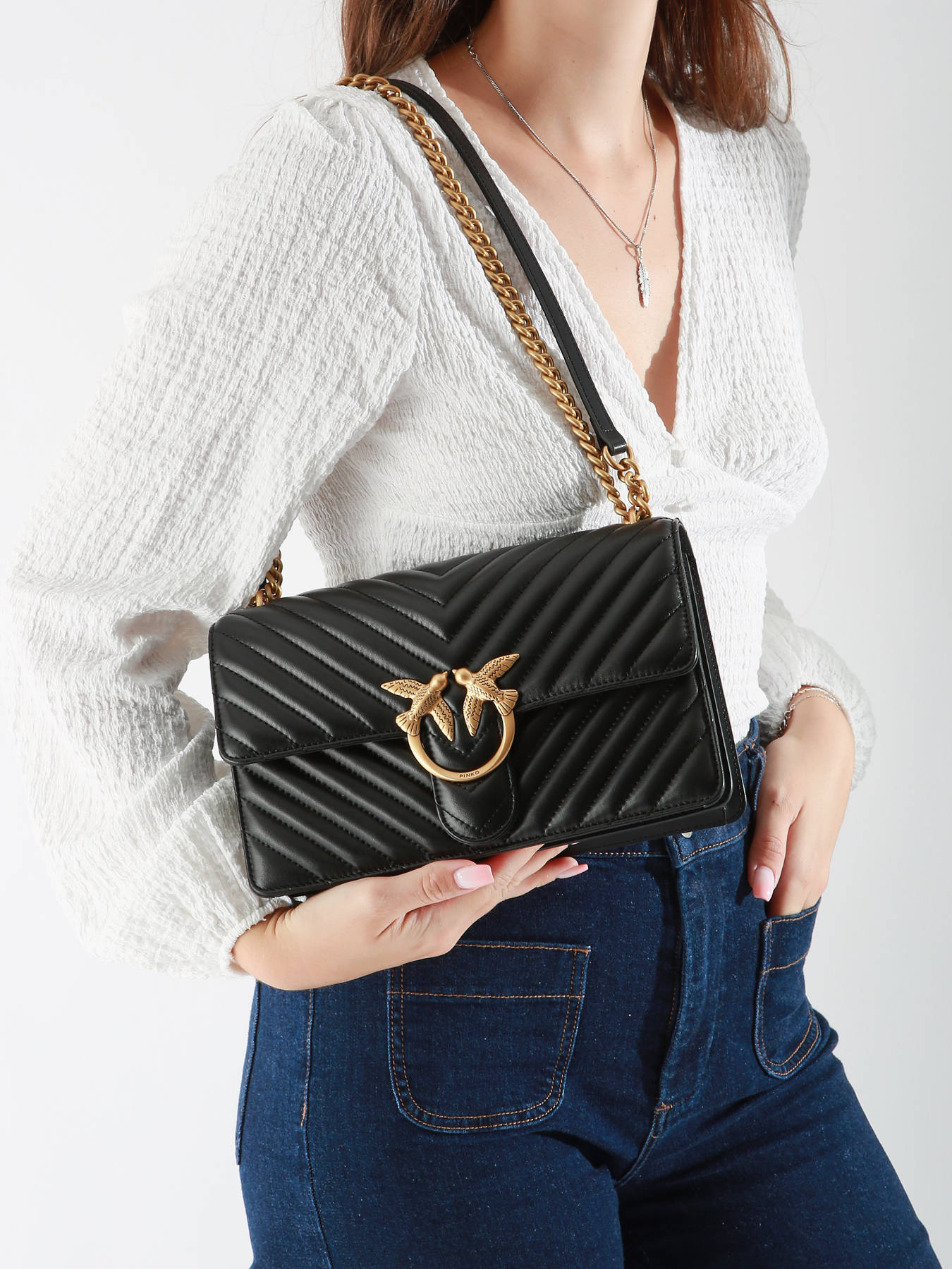 Le sac bandoulière PINKO en cuir de mouton allie élégance et fonctionnalité. Son extérieur présente une fermeture à rabat avec fermoir, garantissant sécurité et style. La hauteur de la anse est de 14,5 cm, offrant un confort optimal lorsqu'il est porté à la main ou en bandoulière. La bandoulière réglable permet une adaptation parfaite à votre morphologie pour un porté à l'épaule ou en bandoulière. À l'intérieur, le sac est ingénieusement conçu avec une séparation principale pour organiser vos affaires, une poche simple pour vos petits objets, et une poche éclair pour une accessibilité rapide. Avec ses deux compartiments spacieux, il offre une excellente capacité de rangement tout en conservant une silhouette élégante. Ce sac est le choix parfait pour celles qui recherchent un accessoire chic, pratique et sophistiqué.