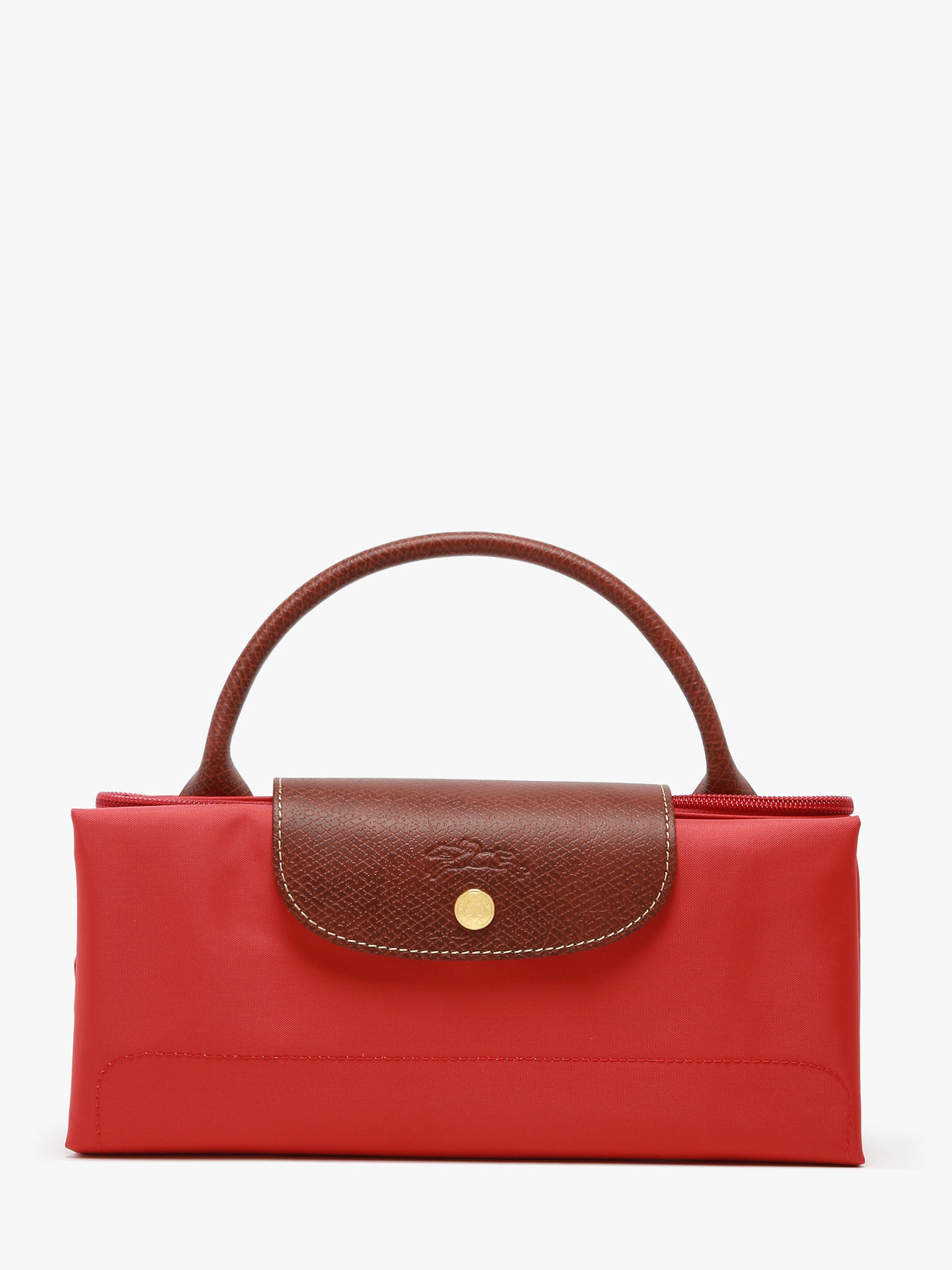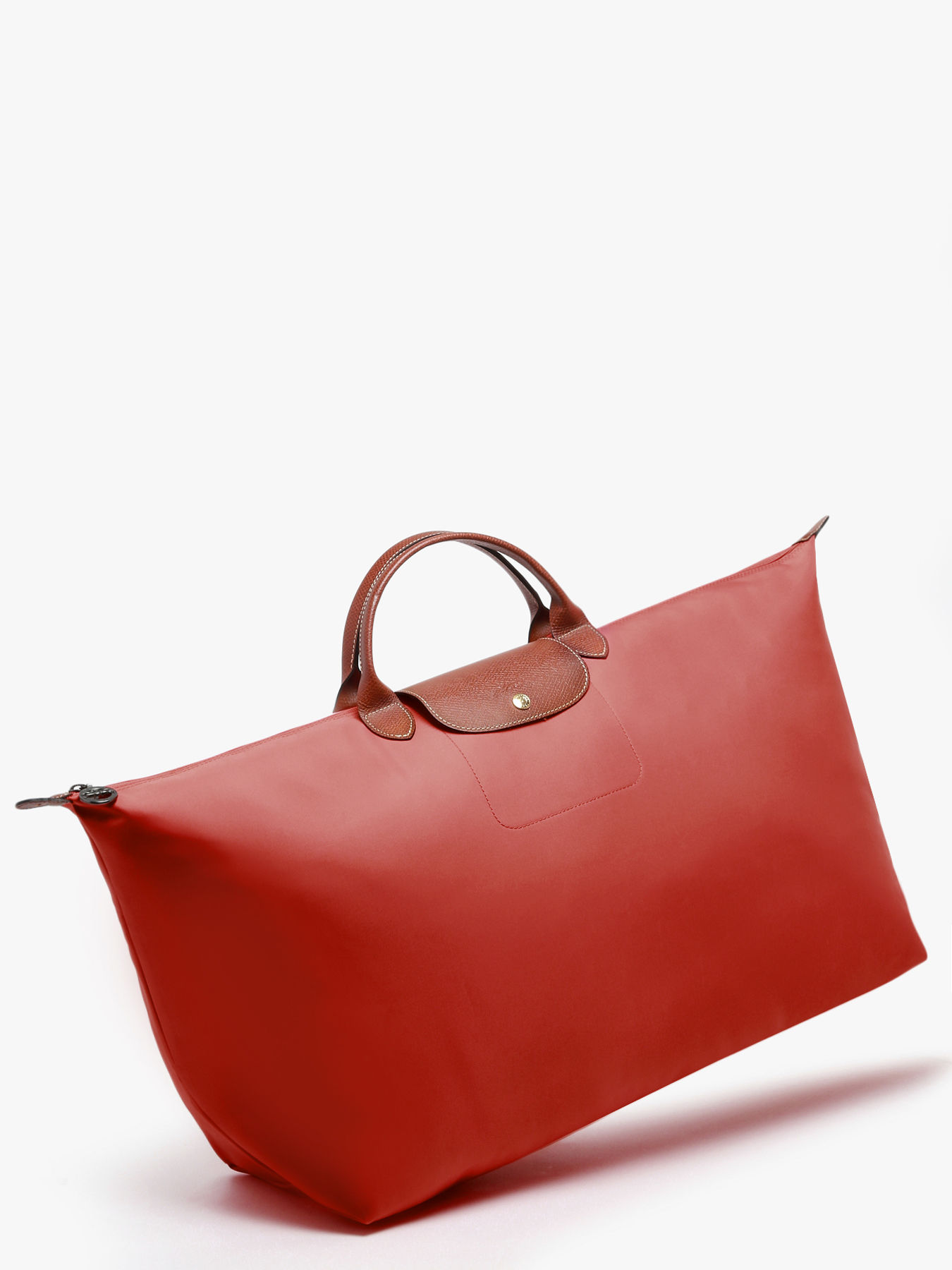 Fermez ce sac de voyage Le Pliage Longchamp à l'aide d'un zip ainsi que d'un rabat à pression et portez-le à la main.