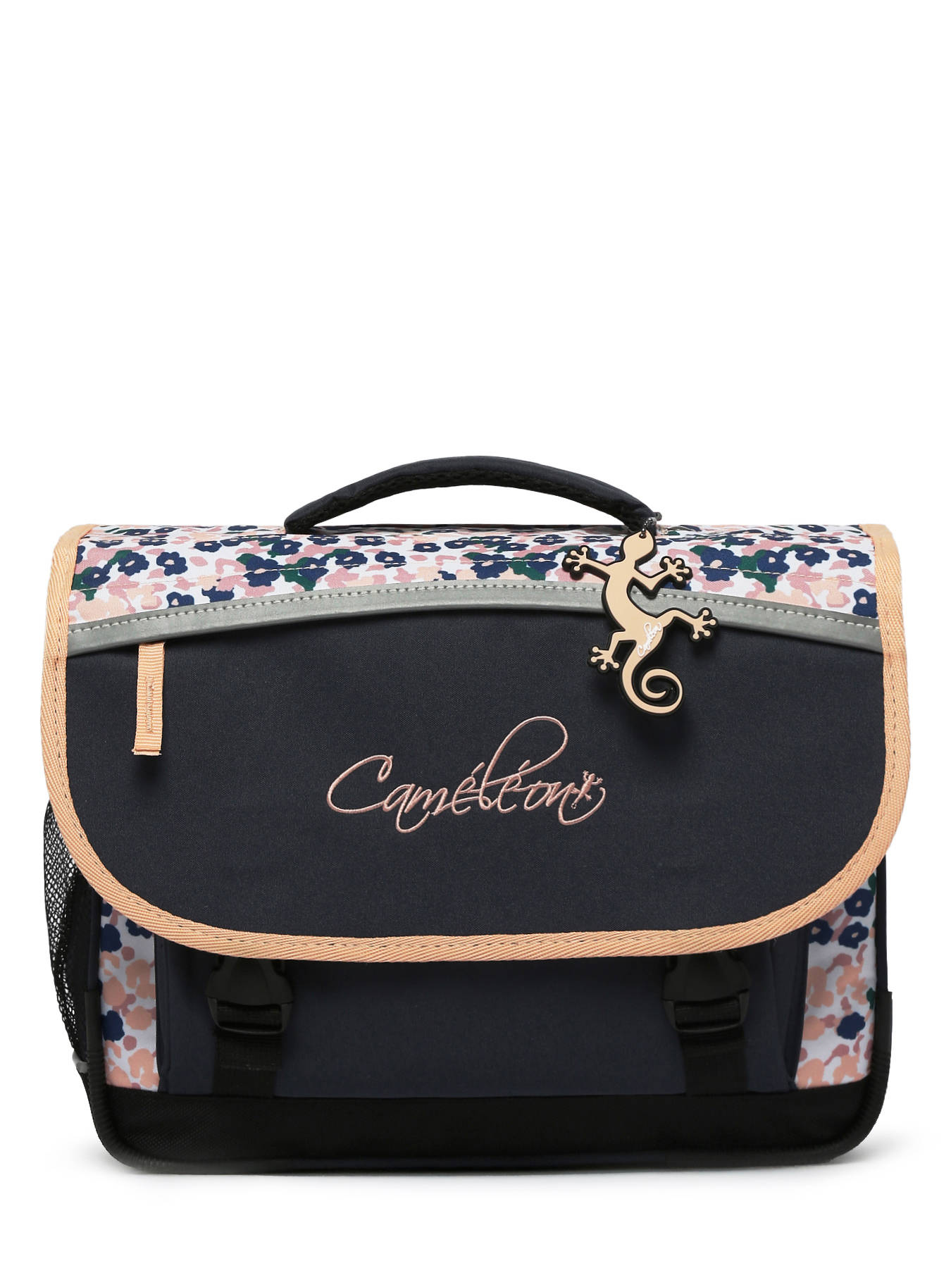 35 cm - 8 liters - 0.96 kg ~ 35 cm children's schoolbag from the Actual line by Caméléon. Perfect for kindergarten and Year 1. The inside of this schoolbag is divided into two compartments separated by a central zipped pocket, designed to hold notebooks sized 21x29.7 cm and 24x32 cm. This 35 cm schoolbag features a side holder for a water bottle and a dedicated space for a ruler. For better support, the back and shoulder straps are padded. The corners and bottom of the bag are reinforced. In addition to being comfortable and durable, this children’s schoolbag has reflective strips all around to ensure maximum safety. A little extra: it comes with a name tag on the back, a free ruler, and is made from waterproof recycled polyester.
