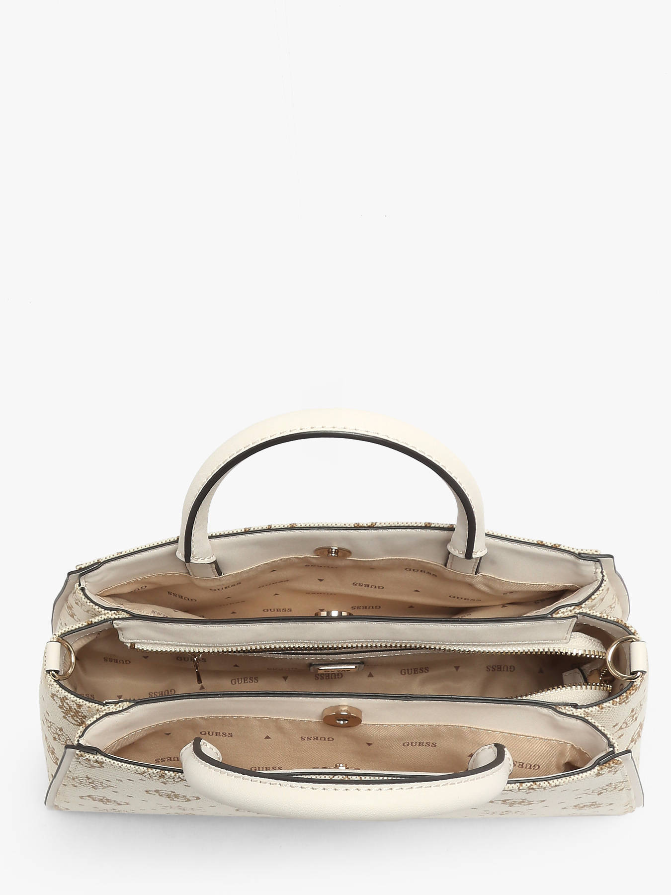 The Neda Guess handbag, crafted from textile with synthetic details, combines elegance, modernity, and practicality to accompany your day in style. Its zip and magnetic closure secures your belongings while adding a contemporary touch to its refined design. Versatile, it can be carried by hand with its 10 cm handle or worn as a crossbody with the removable strap, offering comfort and freedom of movement. The interior features three compartments, one slip pocket, and one zip pocket, allowing you to organize essentials such as your phone, wallet, and keys efficiently. A back exterior pocket provides quick access to frequently used items. Compact yet functional, the Neda bag impresses with its modern look and meticulous finishes. Stylish and practical, this bag becomes a wardrobe essential, perfect for complementing both urban and casual outfits with sophistication.