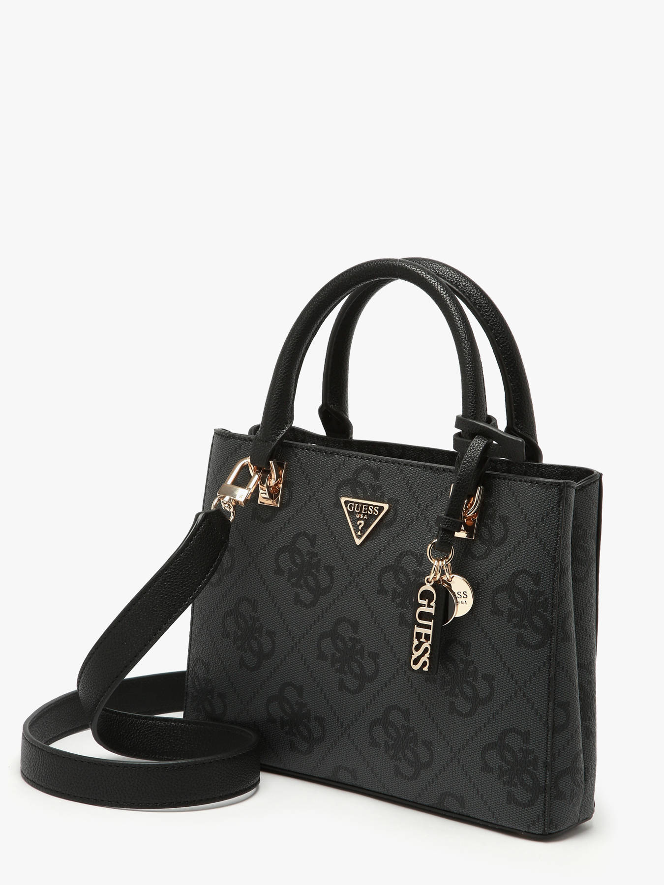 The NOELLE GUESS handbag, made of P.U., combines elegance and functionality for everyday use. The exterior features a secure zip closure and a practical back pocket for quick access to essentials. With a handle height of 10 cm, it can be comfortably carried by hand, while the adjustable and removable strap offers the option to wear it crossbody. Inside, the bag has two separate compartments, along with two simple pockets and one zippered pocket, perfect for organizing your belongings efficiently. The NOELLE GUESS is a versatile bag, ideal for combining style and practicality daily.