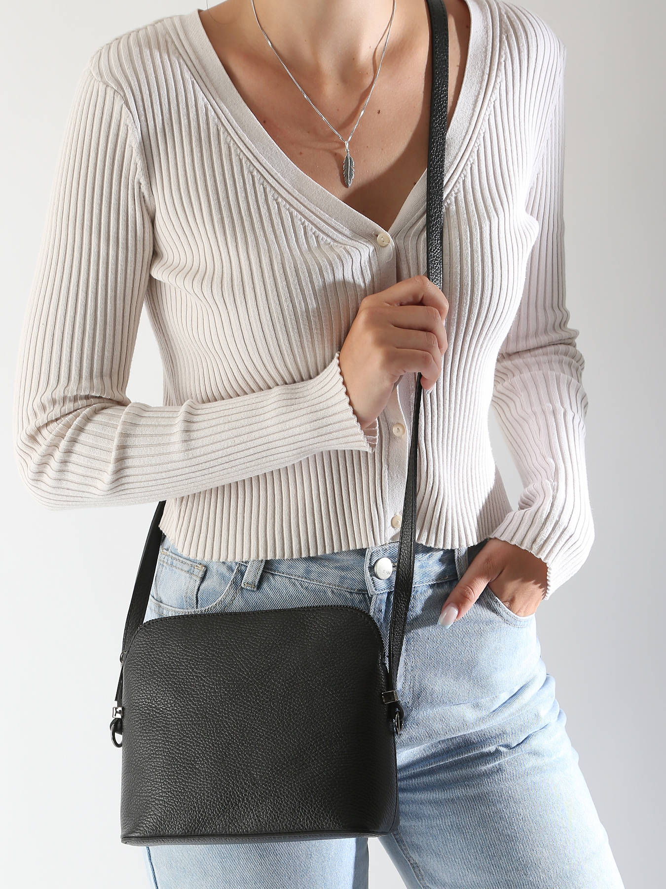 The MILANO crossbody bag, made from cowhide leather, combines style with practicality. Externally, it features a back pocket, ideal for quick access to your essentials. It closes with a zip, providing enhanced security for your belongings. The adjustable strap allows for comfortable crossbody wear, perfect for daily use. Inside, the bag includes a spacious main compartment, a simple pocket, and a zip pocket, making it easy to organize your small accessories. Its refined design and quality materials make it an elegant choice for any occasion.