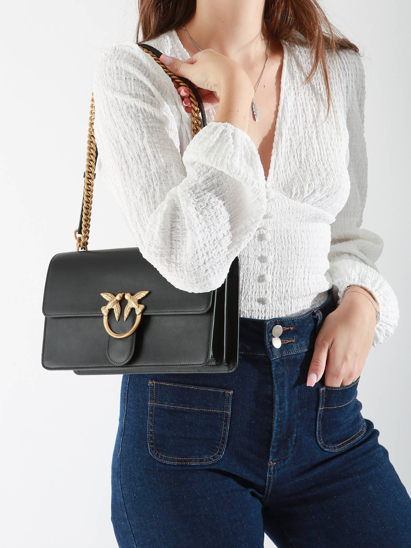 The PINKO crossbody bag in cowhide leather is a stylish accessory that combines functionality with sophistication. The exterior features a flap closure with a clasp, providing both security and ease of access. The adjustable strap allows it to be worn crossbody or on the shoulder, adapting to your needs. Inside, the bag is cleverly designed for organization: a main separation ensures optimized storage, while one simple pocket and one zippered pocket offer practical spaces for small items and accessories. The two spacious compartments maintain perfect organization while keeping a chic and modern silhouette. This bag is ideal for busy days or elegant evenings, blending style with practicality.