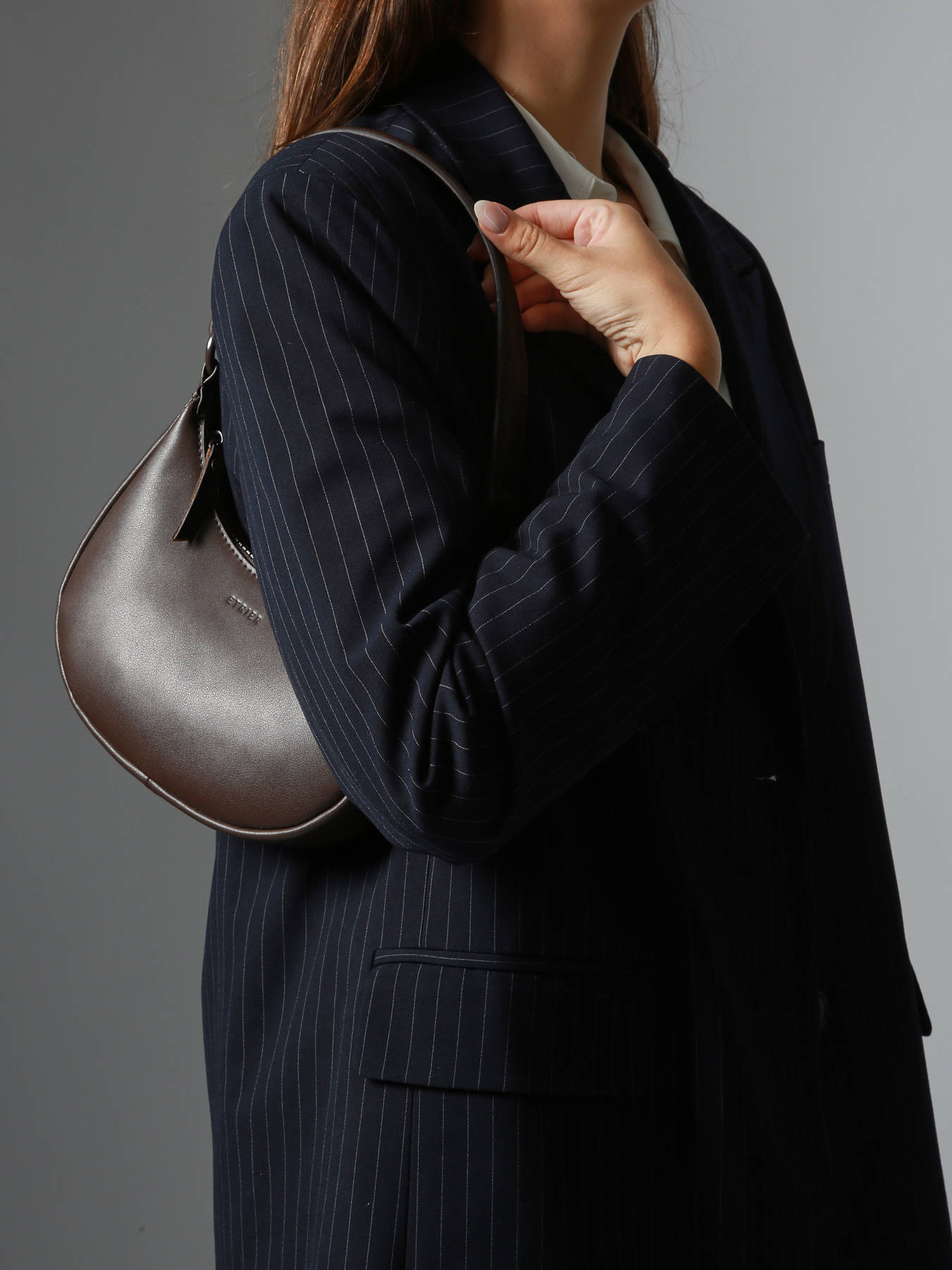 The ETRIER shoulder bag from the OXER line embodies a minimalist, original, and bold design. This half-moon-shaped model can be worn either on the shoulder or across the body, adding a stylish and contemporary touch to your outfit.