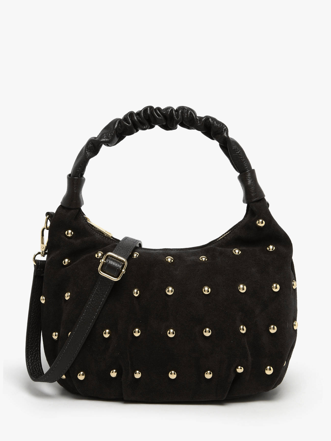 The VELVET STUDS MILANO shoulder bag, crafted from cowhide leather, combines elegance and functionality. Its smooth leather exterior features a zip closure that ensures the security of your belongings. The 16 cm handle height allows for comfortable hand carrying, while the adjustable and removable shoulder strap offers the option to wear it crossbody, according to your preferences and needs. The interior consists of a single compartment, ideal for keeping your essentials organized without bulk. This versatile and chic bag is perfect to complement all your outfits, from everyday wear to dressier occasions, adding a refined and modern touch to your style.