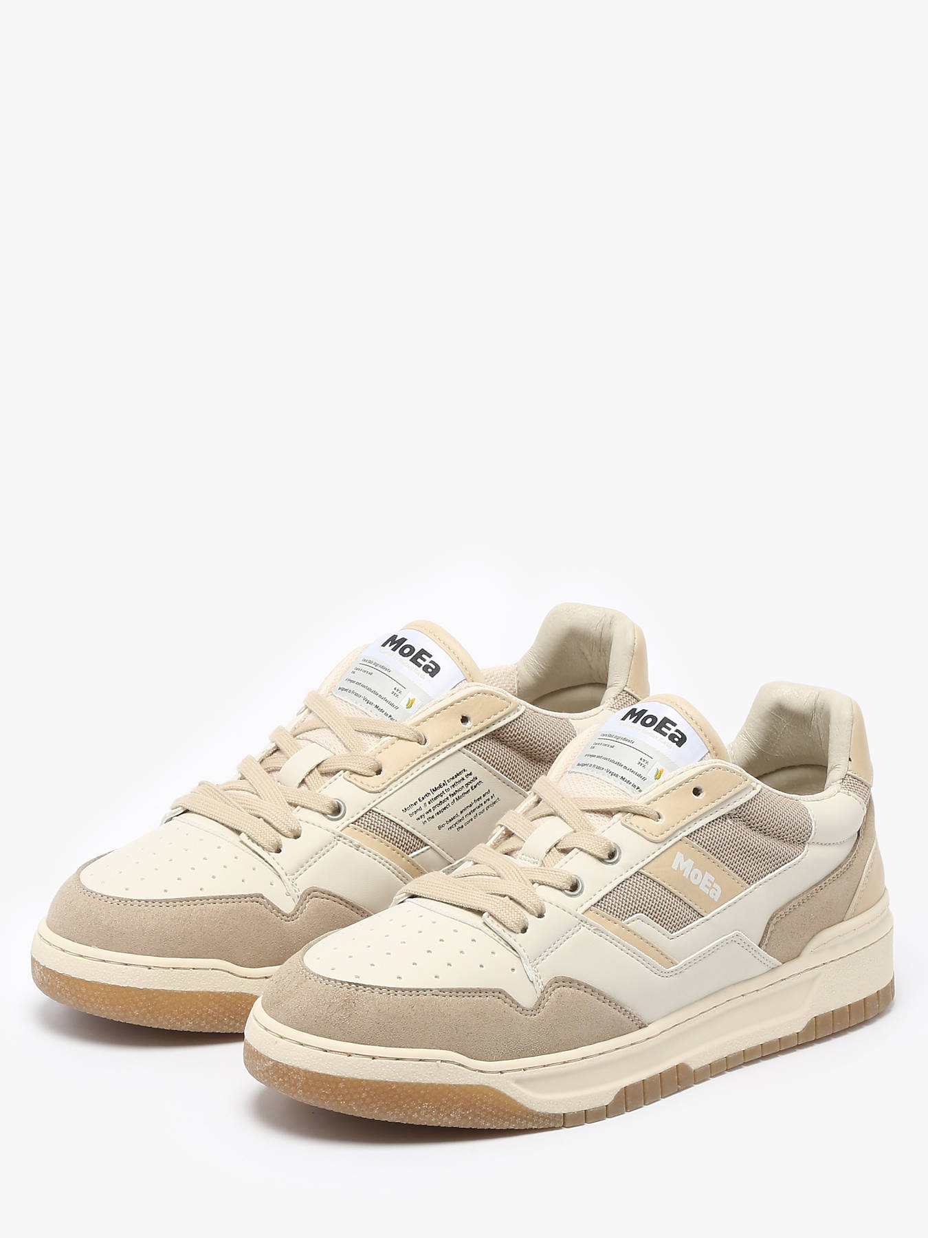 MoEa’s GEN2 sand bio-sneakers blend retro design and sustainable materials for a silhouette inspired by the 80s. The thick yet lightweight sole ensures comfort in urban environments. Made with corn-based biomaterials, these sneakers are 100% vegan and certified by PETA, ensuring no animal involvement in their production. Crafted with recycled materials, they are also made in Europe under fair conditions, adhering to strict environmental standards and minimizing their carbon footprint. The outsole is rubber, and the lining is made from recycled polyester. The laces are crafted from organic and recycled cotton, emphasizing the brand’s commitment to sustainability and ethics.