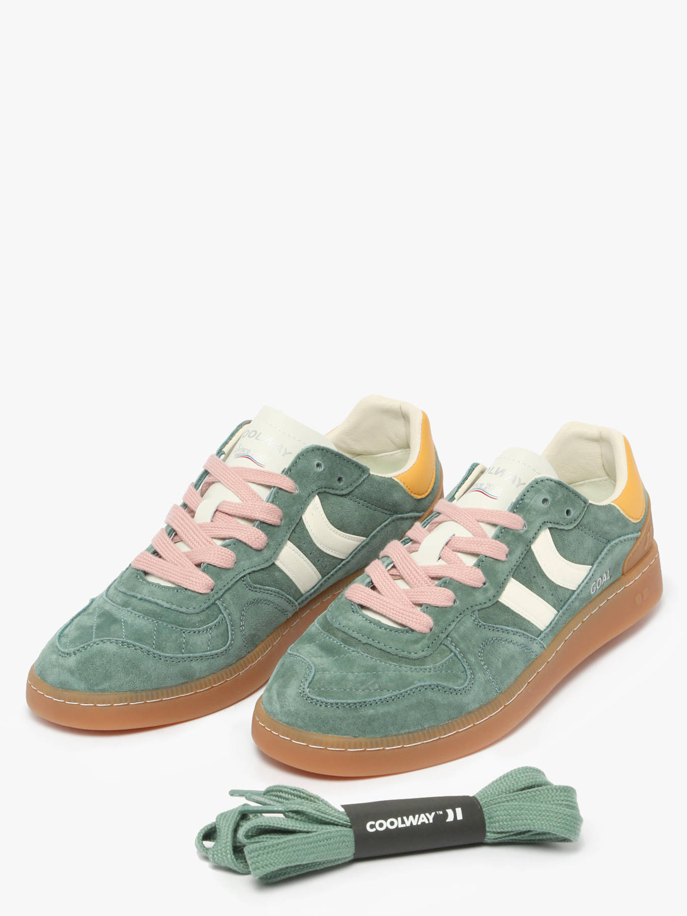 The GOAL sneakers from Coolway perfectly combine comfort and style with their streetwear colorway, making them ideal for summer. Made of leather with a suede finish, they offer exceptional quality and durability. This model fits true to size and features a textile and leather lining for comfortable wear throughout the day. The removable leather and textile insole allows for a personalized fit. The rubber outsole provides excellent grip. Secured with laces, these fashion-forward sneakers are a perfect choice for those seeking a touch of originality while staying on-trend. Coolway creates designs inspired by the latest fashions, all while maintaining a unique flair.