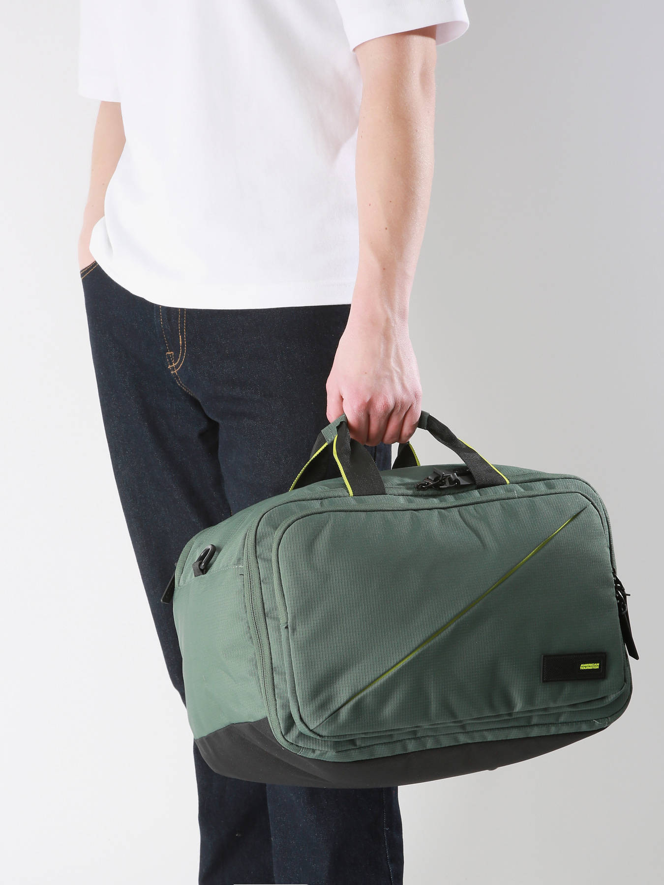 40 cm - 25 liters - 0.6 kg ~ Looking for a smart, lightweight, and stylish travel solution? The Take2Cabin 3-Way underseat bag by American Tourister is built for everyday adventurers and savvy budget travelers. Made from recycled ripstop polyester, it’s durable, light (0.5 kg), and offers 25 L of capacity in a compact 25 x 40 x 20 cm format—approved for underseat cabin use on EasyJet and Ryanair. This versatile bag offers three carrying options: by hand, over the shoulder (with removable strap), or as a backpack thanks to stowable padded straps. A fully padded rear compartment fits a 15.6” laptop and tablet, while the main compartment features elastic straps to secure clothing. A front organizer pocket keeps essentials within easy reach. With a reinforced base, inverted zippers, and trolley sleeve, it’s the perfect compact bag for organized, efficient travel. 2-year warranty.