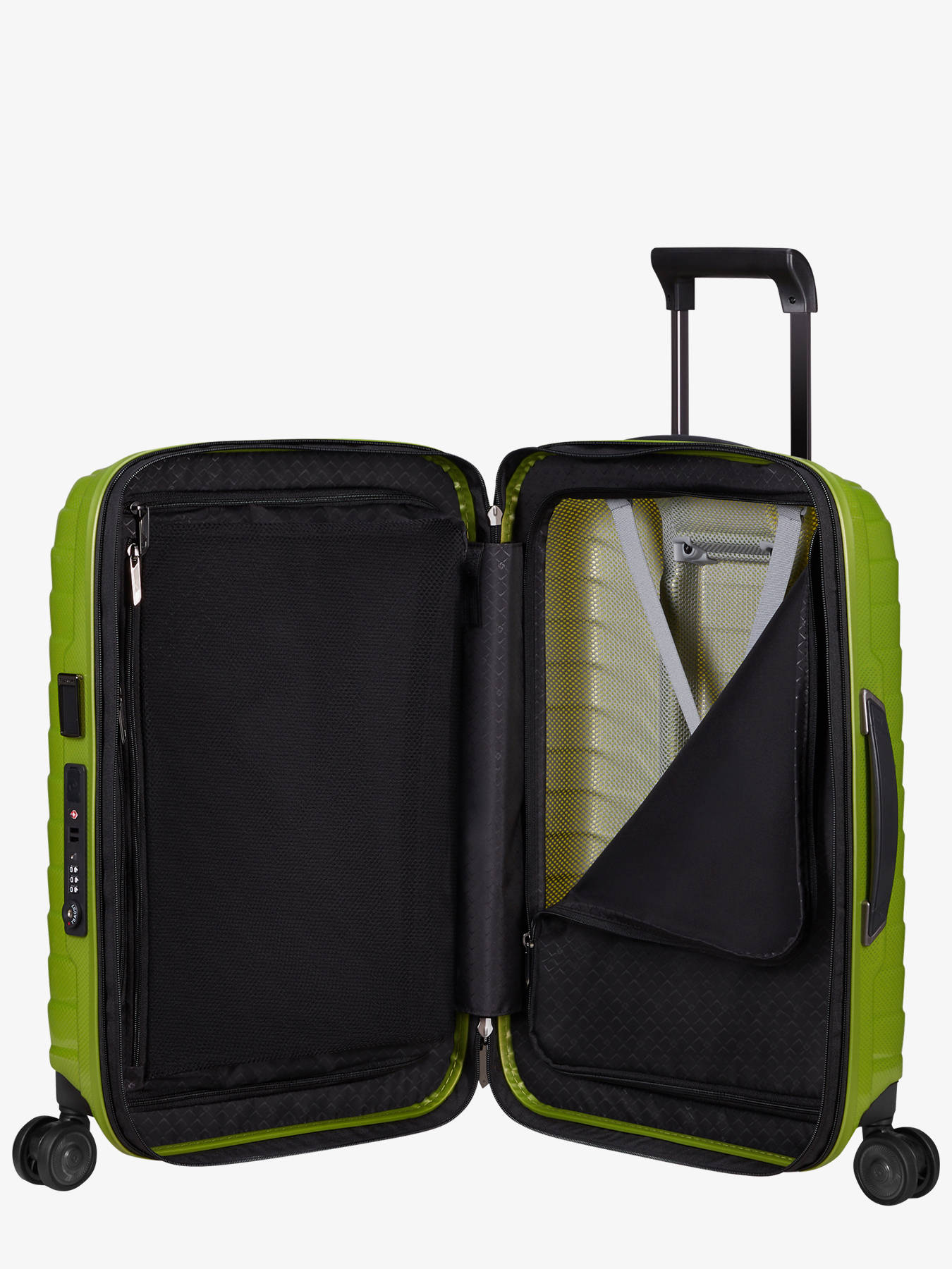 La valise cabine Samsonite Proxis allie élégance, innovation et robustesse pour vos voyages. Fabriquée en Europe en Roxkin™, un matériau exclusif ultra-résistant aux chocs et reprenant sa forme, elle offre légèreté et durabilité. Avec ses dimensions 55 x 40 x 20 cm (extensible à 23 cm) et son volume modulable de 38 à 44 L, elle est idéale comme bagage cabine et peut transporter jusqu’à 10 kg. Son design pratique comprend une serrure TSA, quatre roues doubles silencieuses, une poignée télescopique double tube, des poignées haute et latérale ainsi qu’un porte-adresse rétractable. L’intérieur est organisé en deux compartiments avec sangles, séparateurs zippés, poches et un espace pour batterie externe (non incluse), complété par un port USB intégré pour recharger vos appareils. Son extension offre un espace supplémentaire pour vos affaires. Avec Samsonite Proxis, profitez d’un bagage haut de gamme pensé pour voyager léger, connecté et en toute confiance.