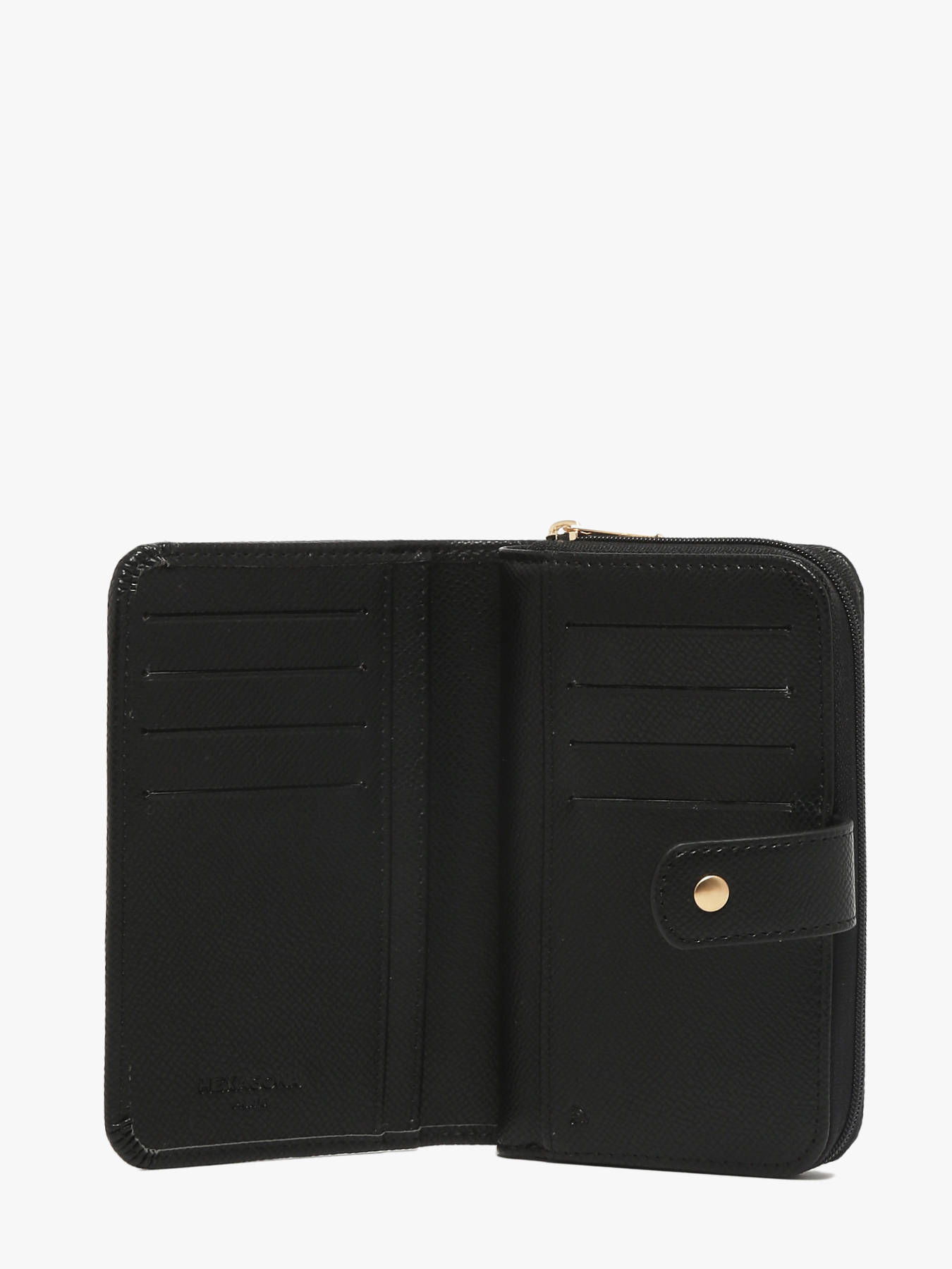 This Hexagona wallet combines refined design with practical functionality, making it perfect for everyday use. Its synthetic exterior ensures durability and lightness, while the leather interior adds a touch of sophistication and long-lasting quality. Designed for secure and easy use, it features a flap with a press-stud closure. Inside, the wallet offers excellent organization: eight card slots, two bill compartments, and three slip pockets to store papers, tickets, or receipts. The main pocket provides extra space to keep essentials neatly arranged. Compact yet practical, this wallet fits easily into a handbag or pocket without compromising on style. Blending modern appeal with functionality, it embodies Hexagona’s craftsmanship and stands as an essential accessory for staying organized with elegance every day.