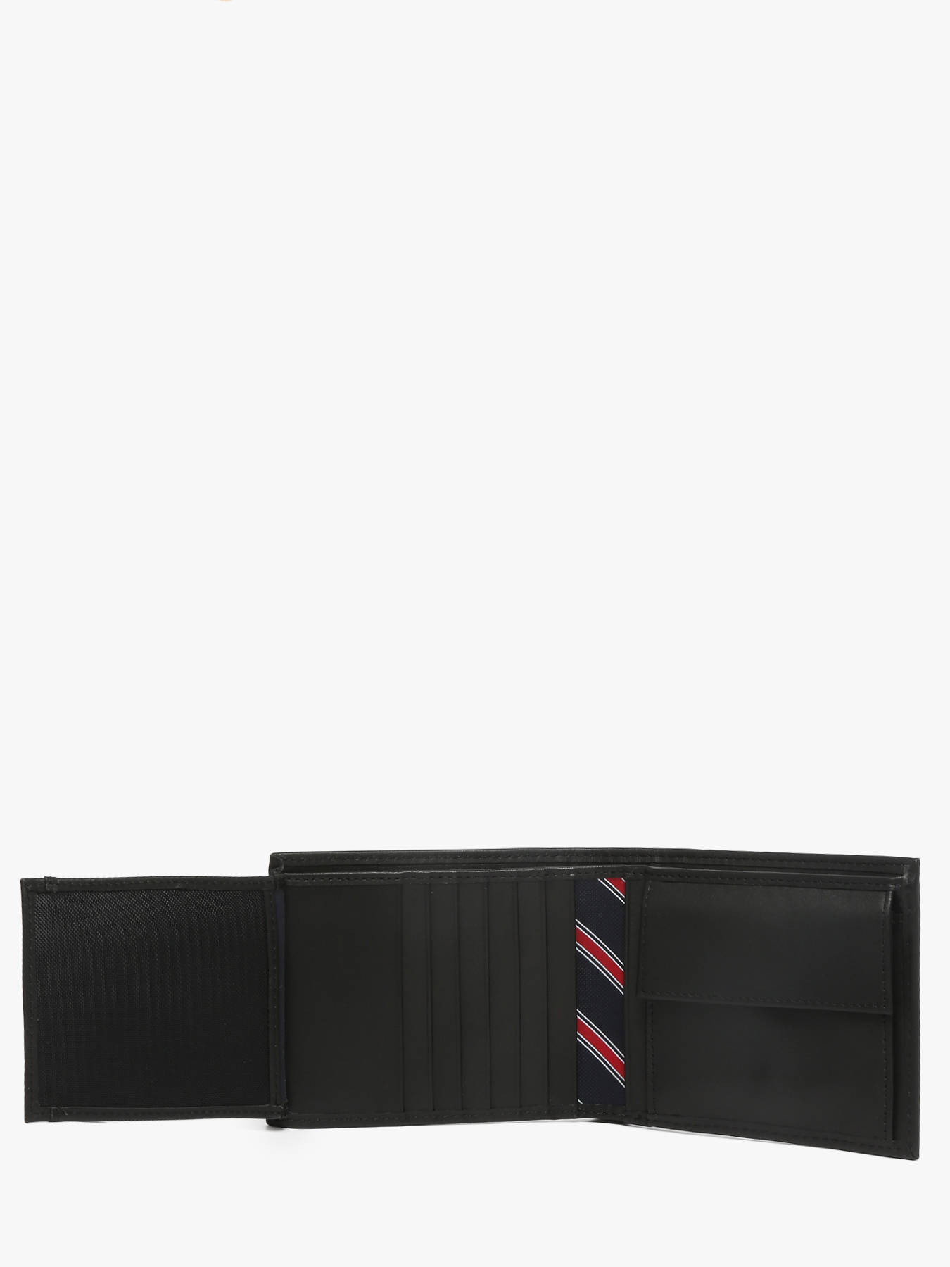 Our team presents this Tommy Hilfiger leather wallet for its multiple highlights: its genuine leather, bill slot, four card slots and snap pocket. Plus, know that this piece also features an iconic stripe lining, an embossed Tommy Hilfiger logo on the inside and a metallic Tommy Hilfiger flag on the front.